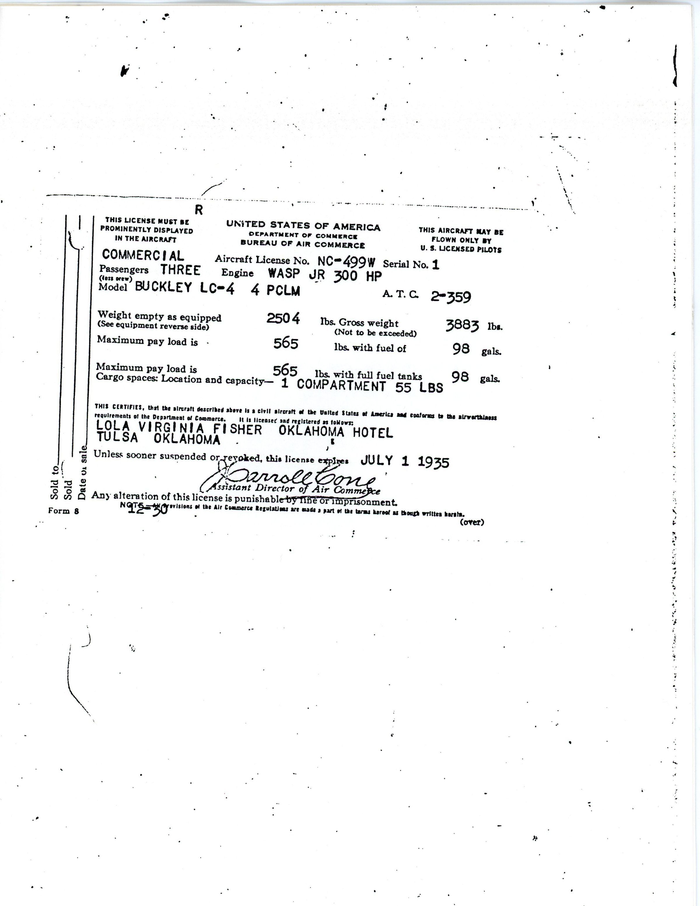 Buckley Wichcraft LC-4 Department of Commerce archival materialCollection