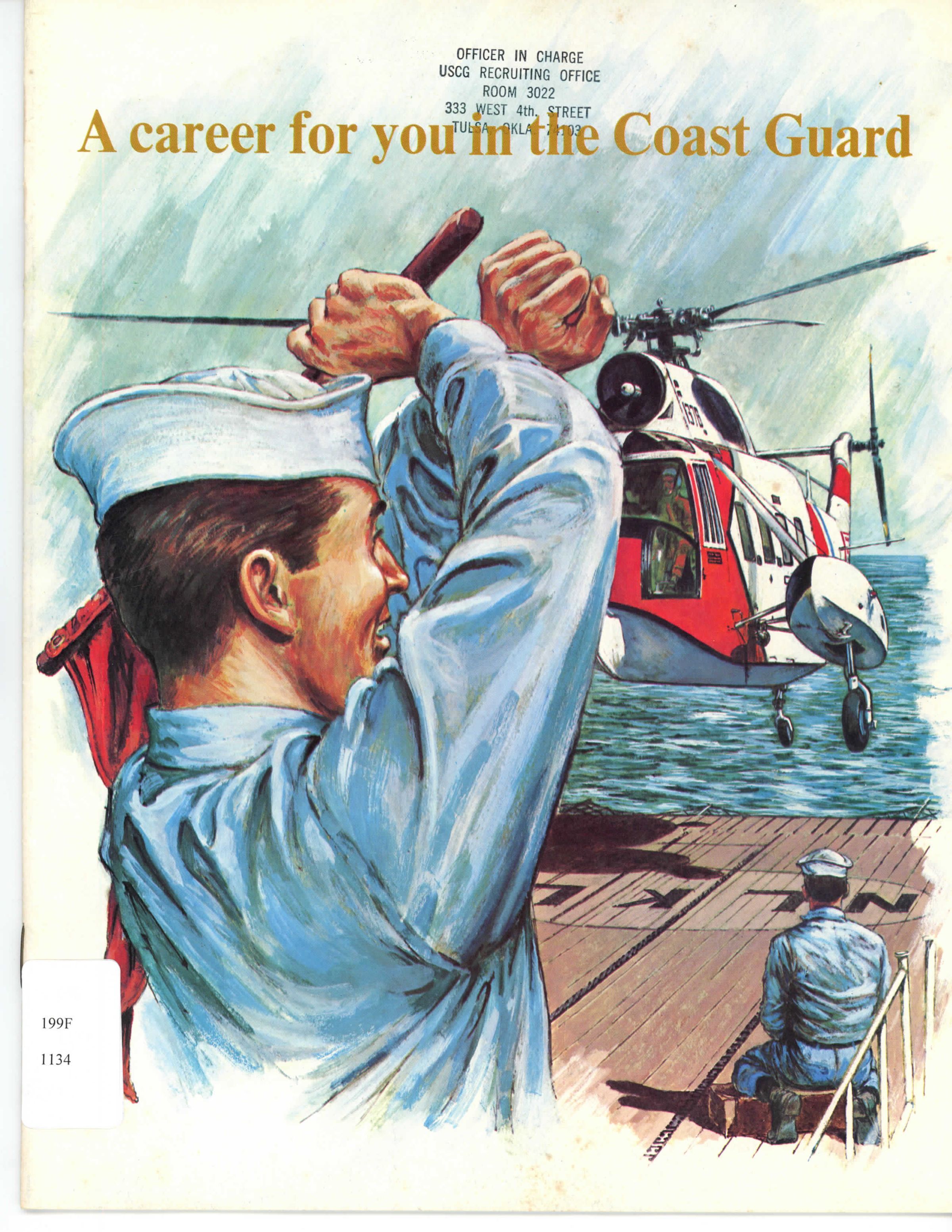 A recruitment booklet from the USCG Recruiting Office of Tulsa, Oklahoma on Career Opportunities in the United States Coast GuardContext