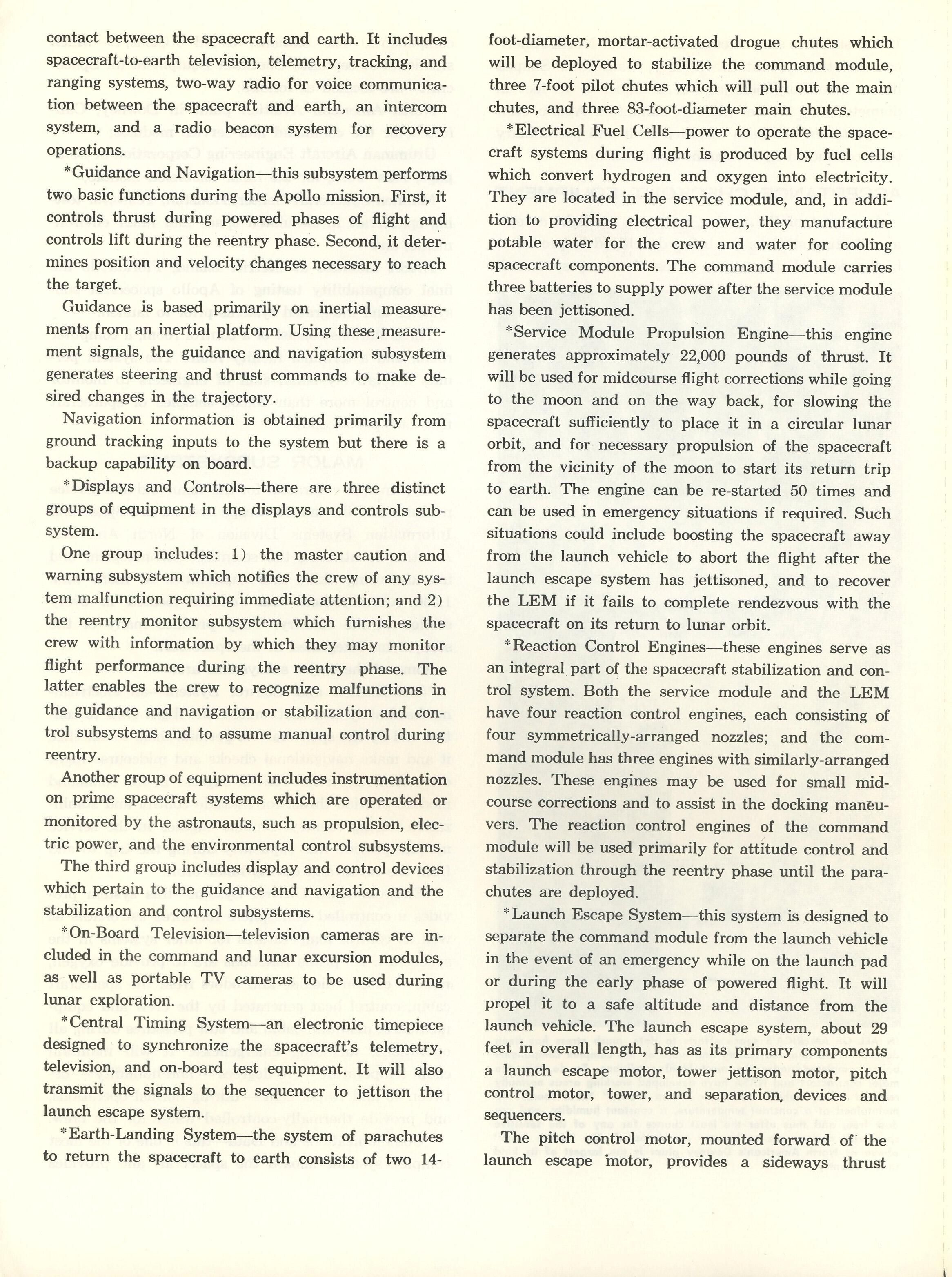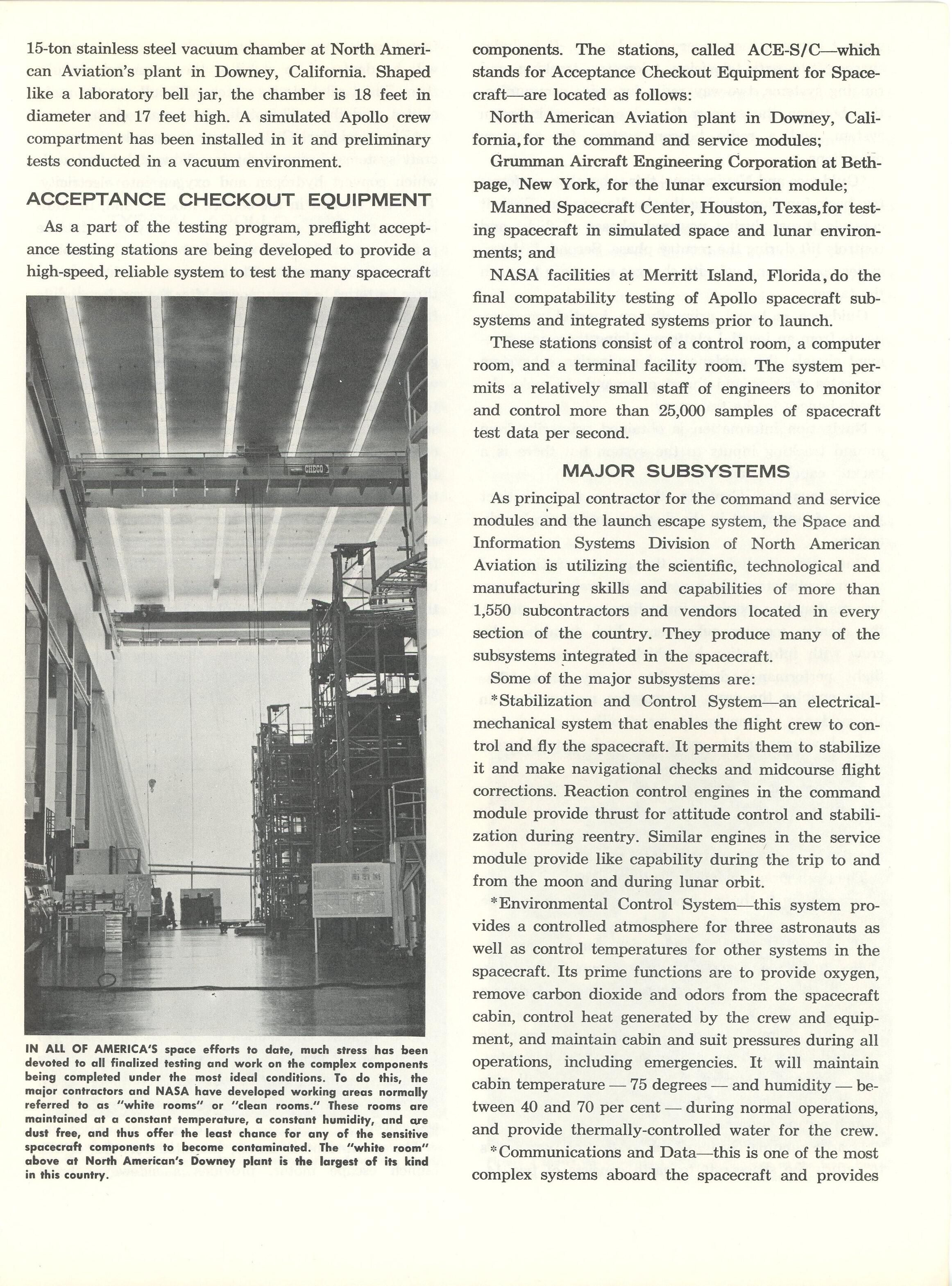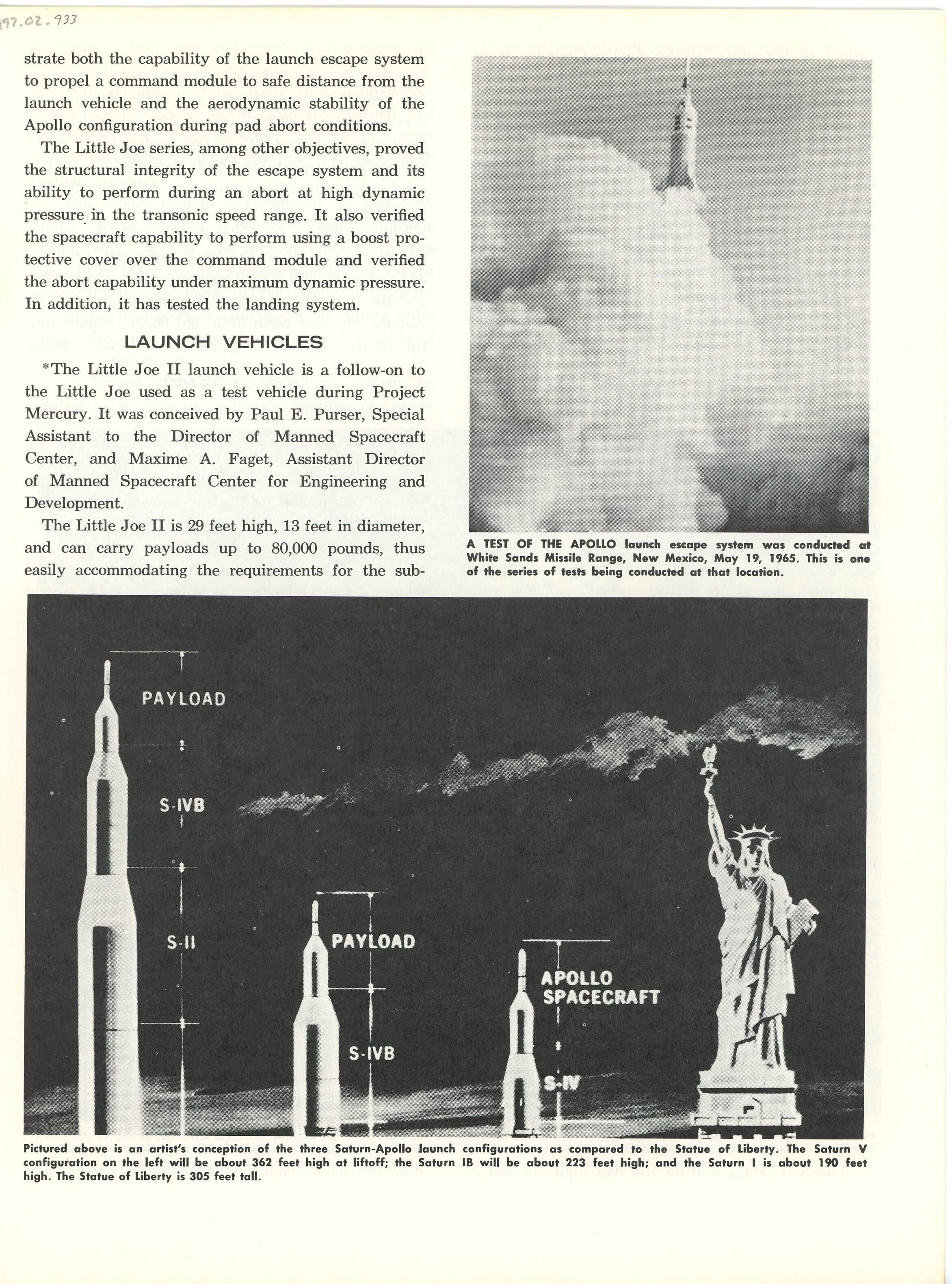 A fact sheet published by NASA in 1965 containing a short history of the Apollo Space Program including objectives, background of the program, and details of its launch vehicles, spacecraft, and subsytemsCollection