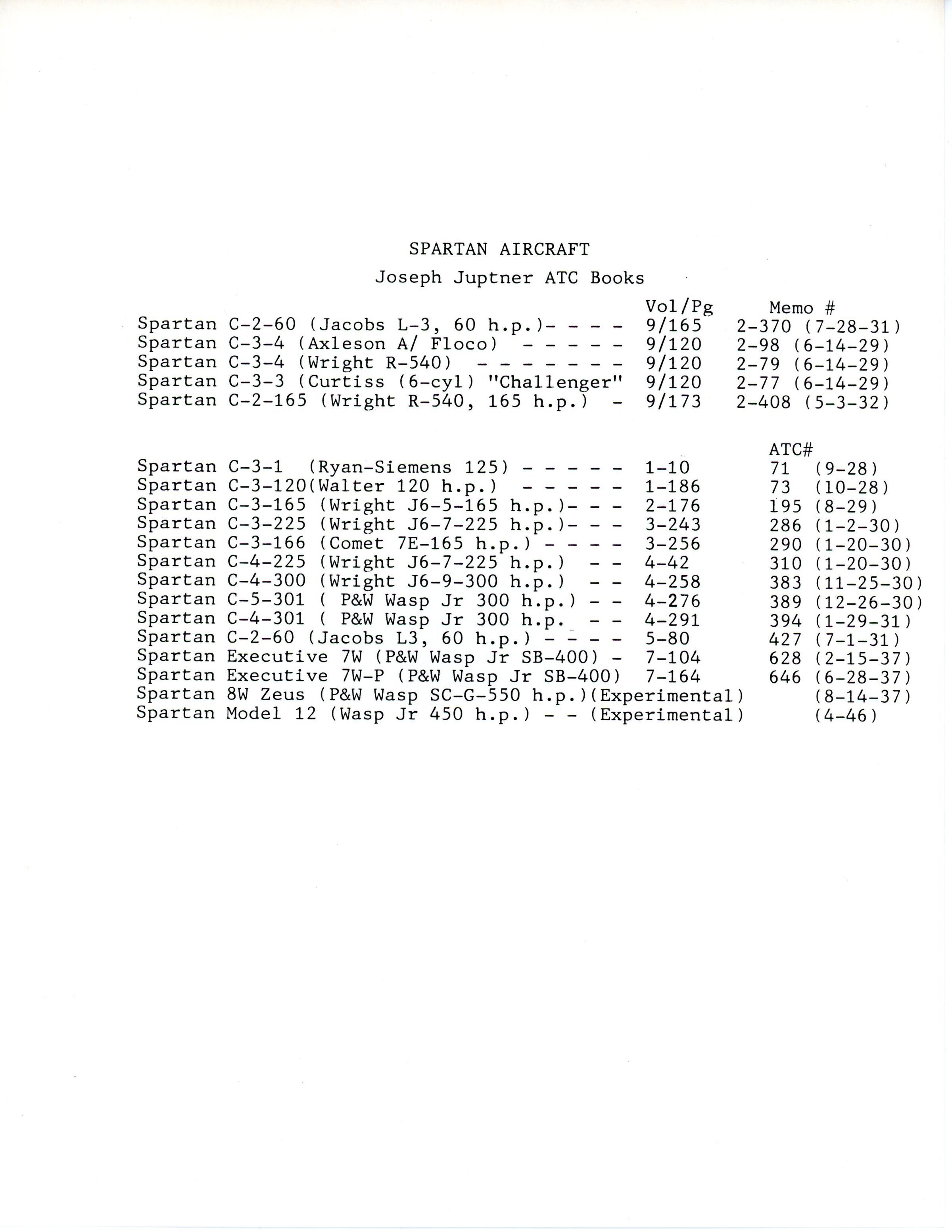 Spartan Aircraft - Joseph Jupiter ATC booksEntry/Object ID