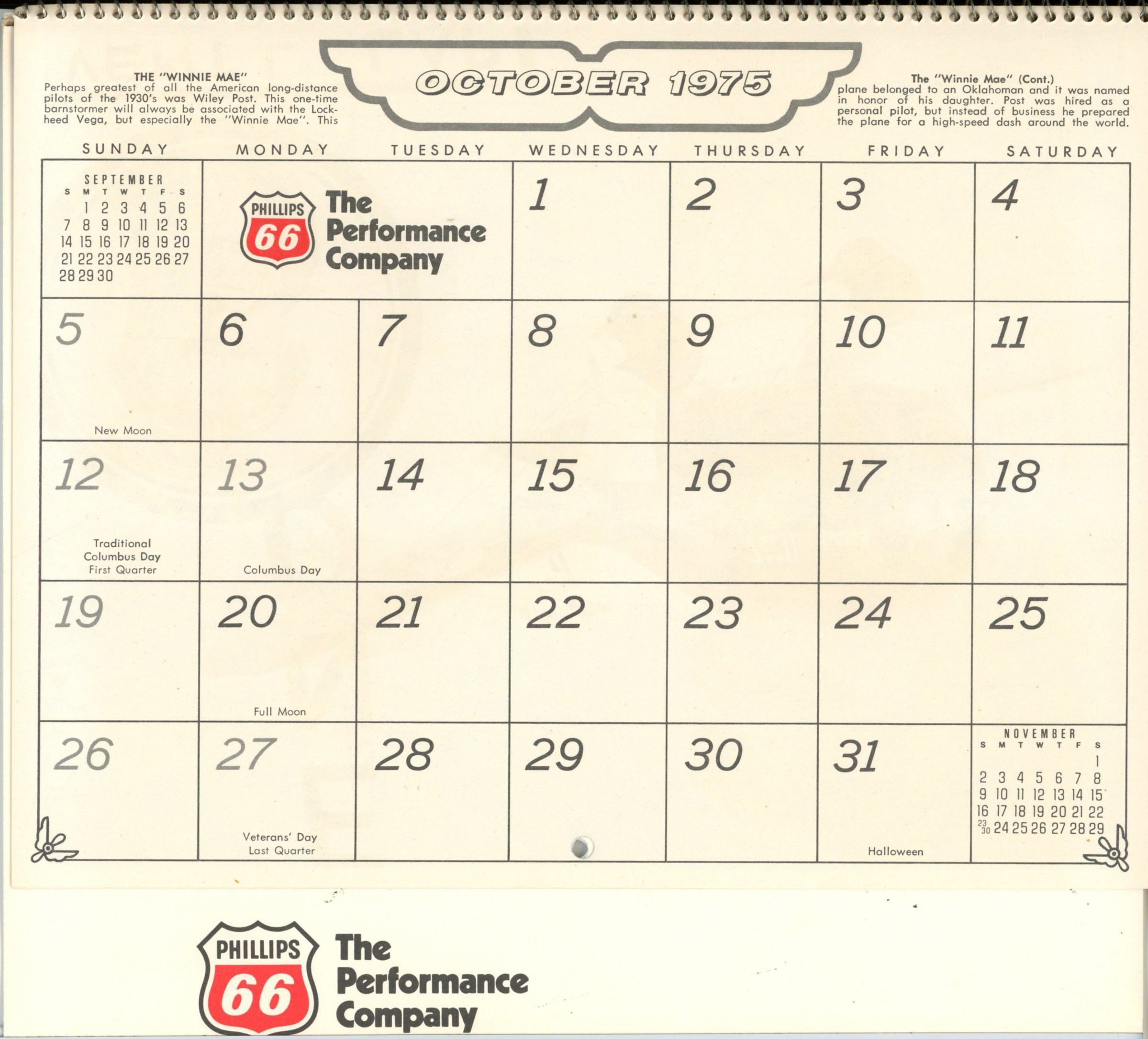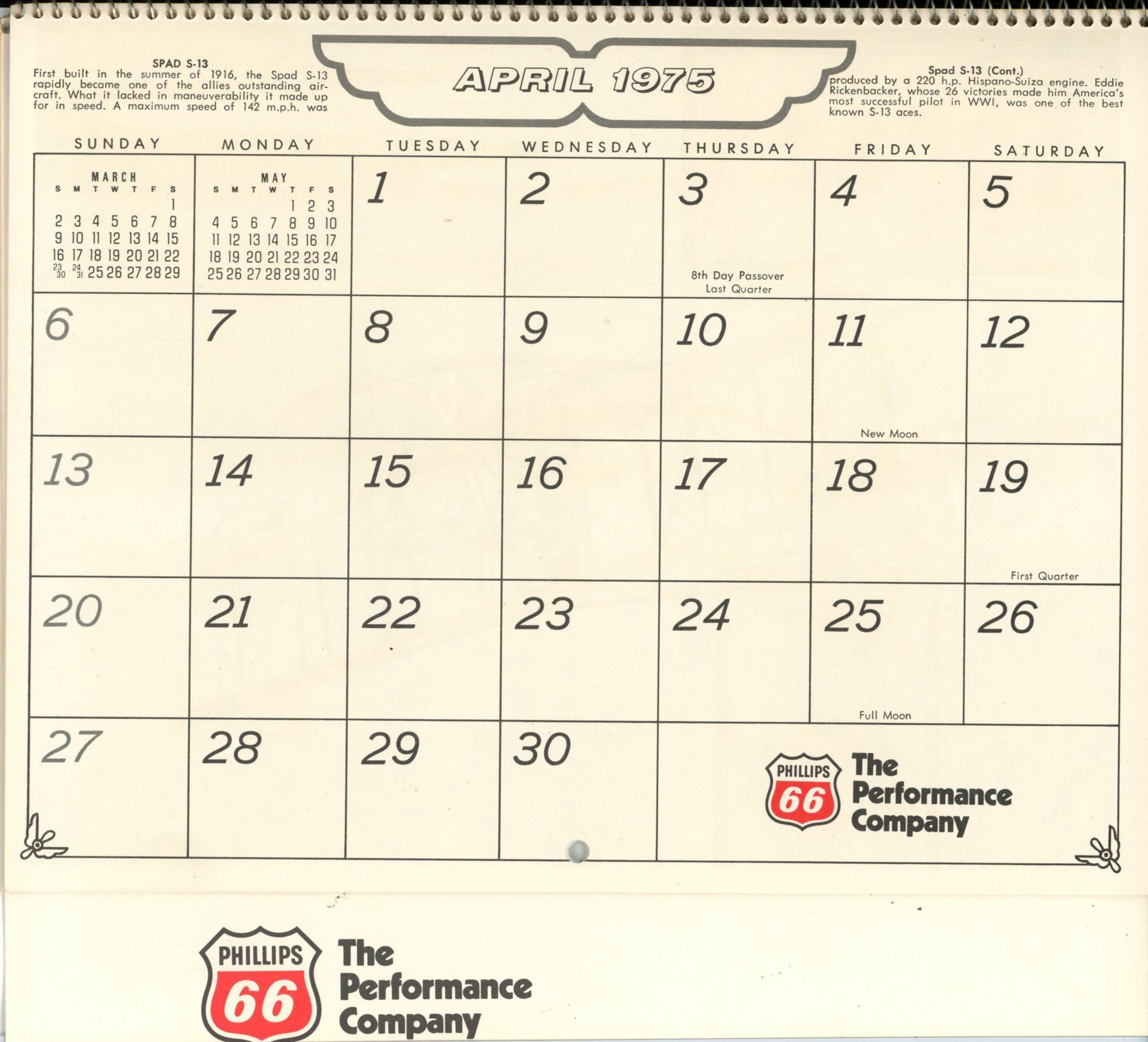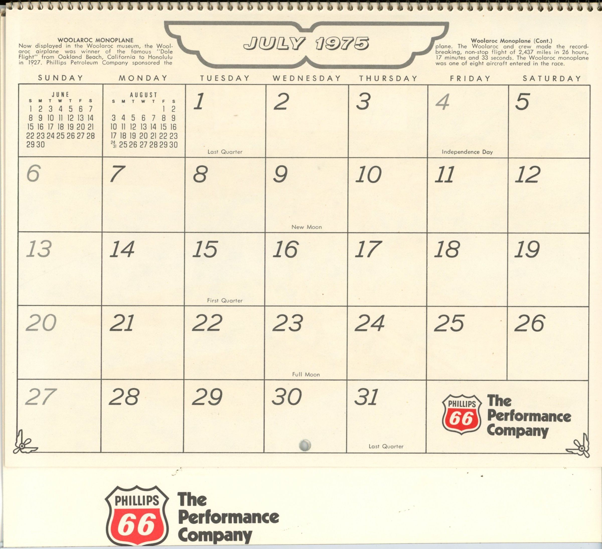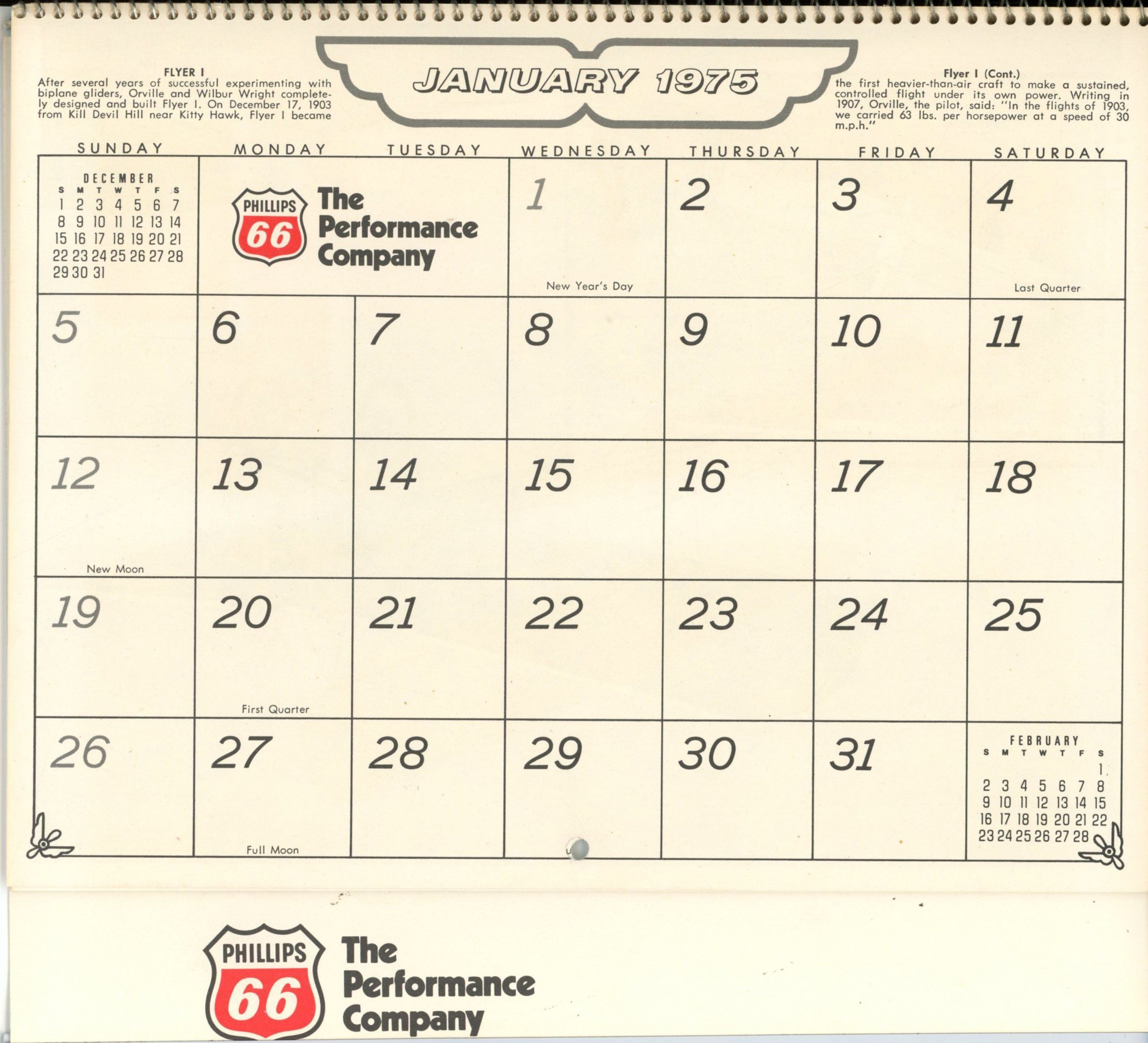 A Calendar for 1975 From Your Phillips 66 DealerDescription