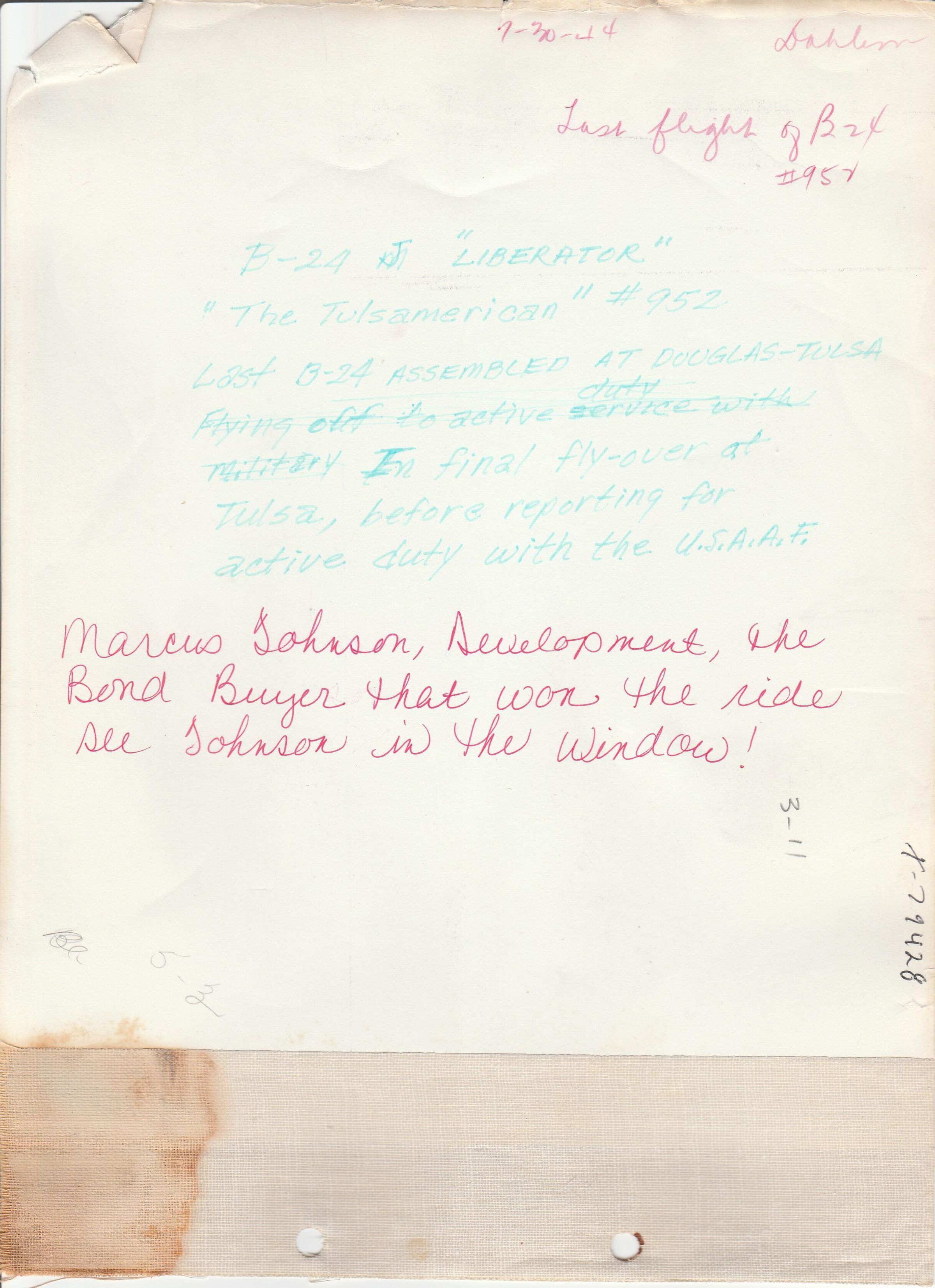 Scroll for Tulsamerican B-24 from Douglas workers