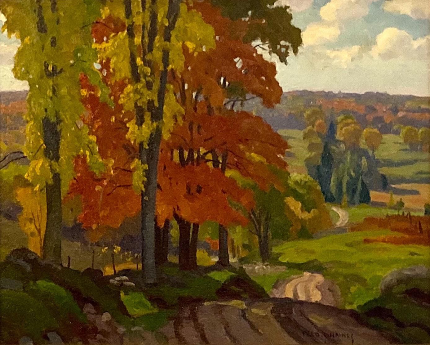 Born in Meaford on the Georgian Bay, Ontario coast, Frederick Stanley Haines was an accomplished Canadian painter, art curator and teacher well known for his Ontario landscapes and very active in the arts community. He held many prominent positions in art societies, galleries and schools. Haines moved to Toronto in 1896, at age 17, to pursue his ambition of becoming an artist. He painted portraits to finance his studies at the Central Ontario School of Art. He first exhibited with the Ontario Society of Artists in 1901 and was later elected a member. In 1913, Haines travelled to Belgium, where he studied at the Académie Royale des Beaux Arts, Antwerp, and was awarded a gold medal in figure painting. In 1919, Haines became an associate member of the Royal Canadian Academy and started making his first prints. A year later, he was appointed Secretary, Department of Graphic Art, Canadian National Exhibition and by 1924 was its commissioner of Fine Arts.