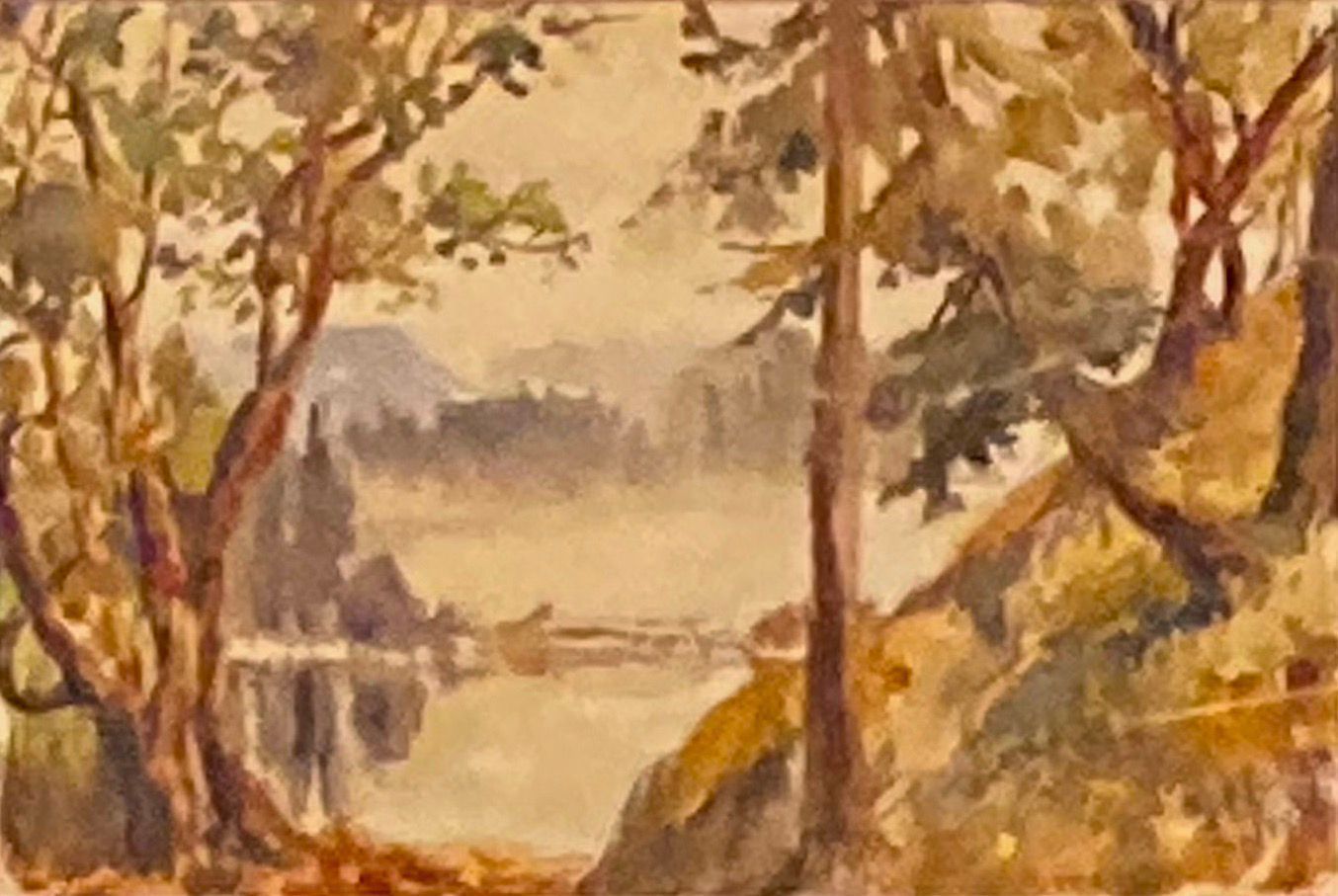 Set of three watercolour landscape scenes of Goldstream Park, Victoria, BC -