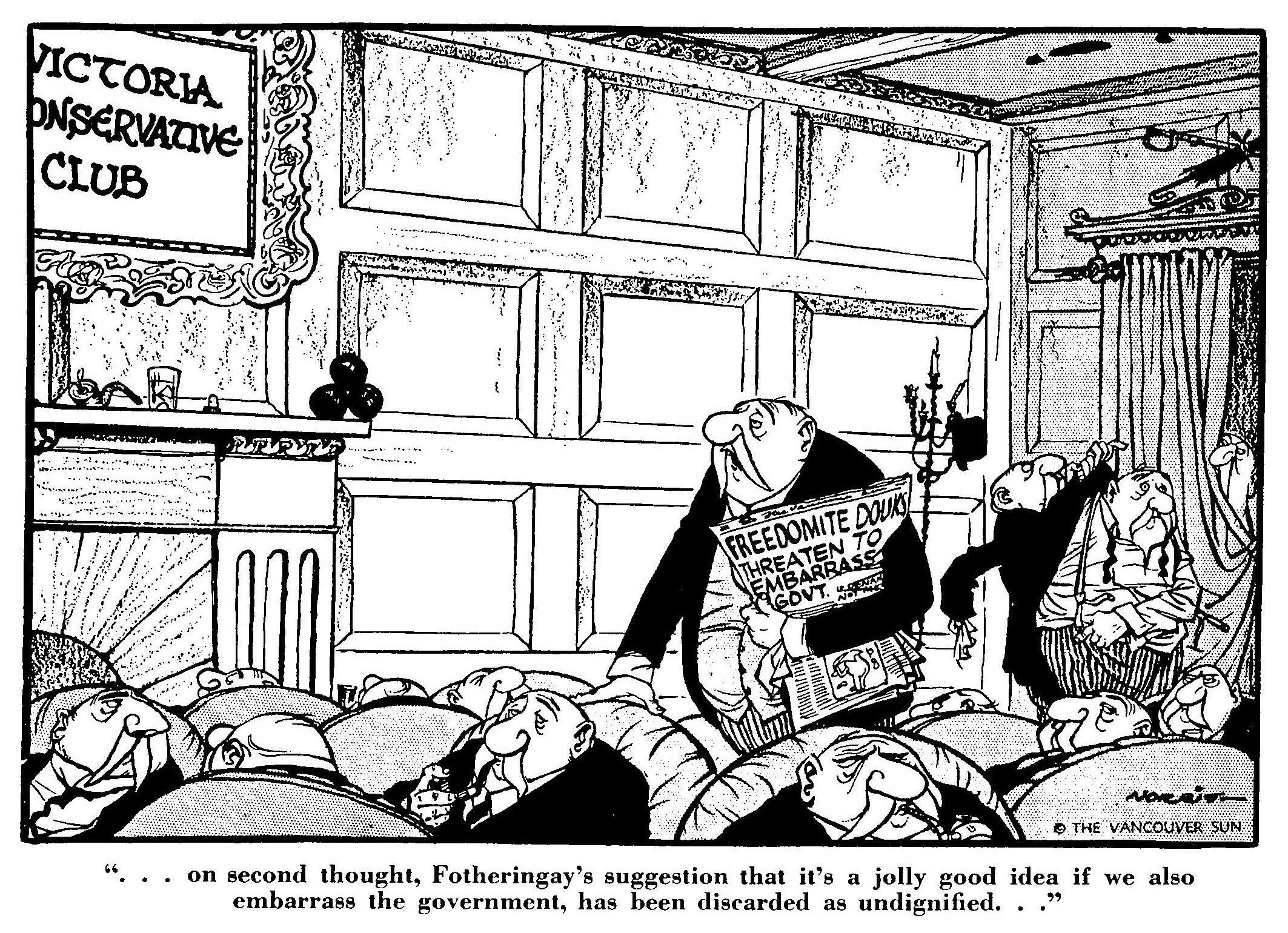 On second thought, Fotheringay’s suggestion that it's a jolly good idea if we also embarrass... Political cartoon for the Vancouver SunEntry/Object ID