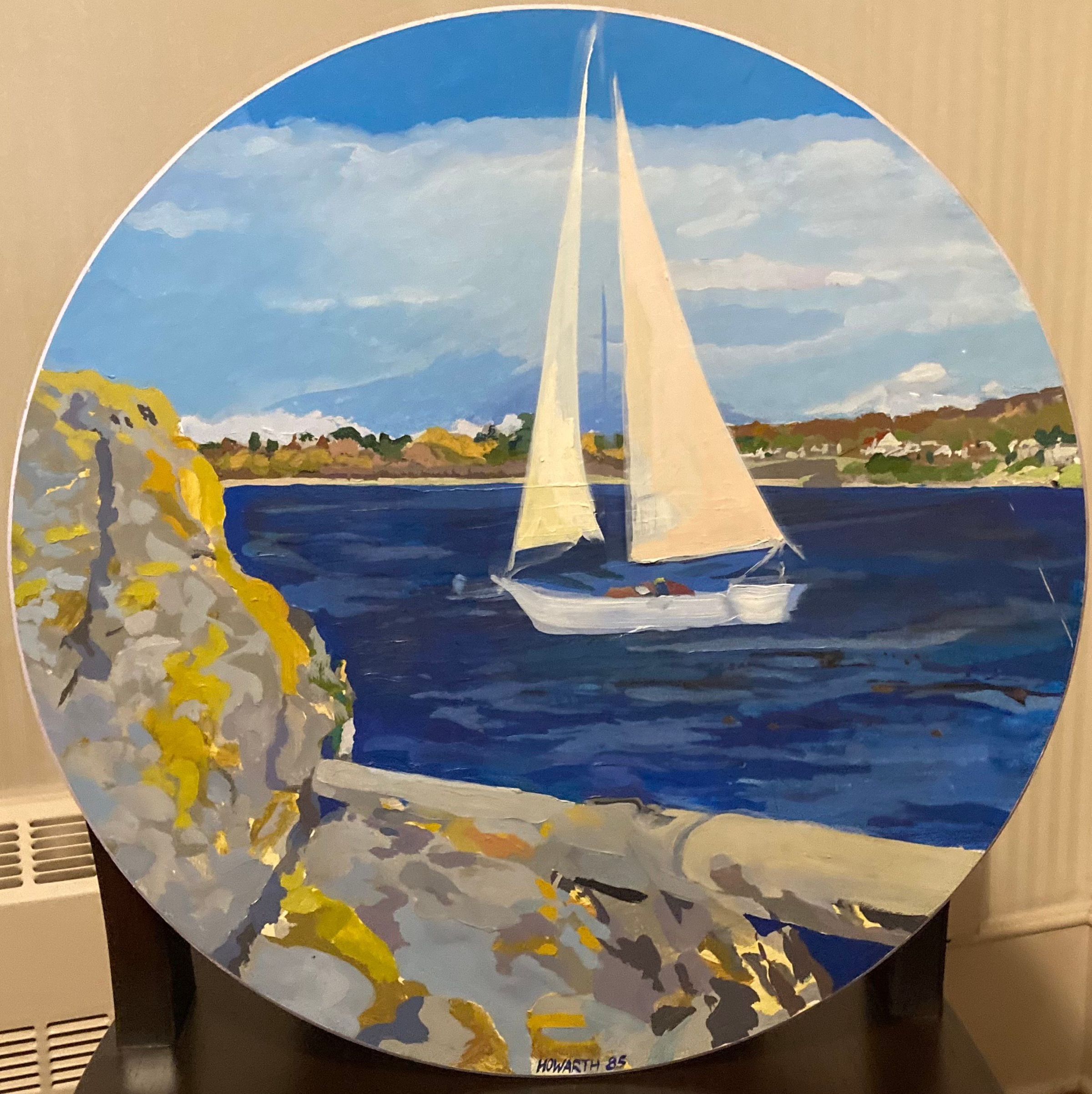 Alberta-born Glenn Edward Howarth was prominent western Canadian painter, draughtsman, educator, writer and pioneer in computer art. He moved to Victoria in the 1960s and attended the University of Victoria, earning a Fine Arts degree in 1970 studying under Donald Harvey, Peter Kahn.  and others. Of note, it was during this formative period that Howarth began to experiment with painting on circular-shaped canvases.  He dedicated himself to both art and teaching in the early 1970s and remained a fixture in the local art scene for some 40 years. He worked in a variety of media including oil, acrylic, charcoal and pencil, and his work including figural paintings, landscapes, architecture, still-life, as well as marine and industrial scenes.