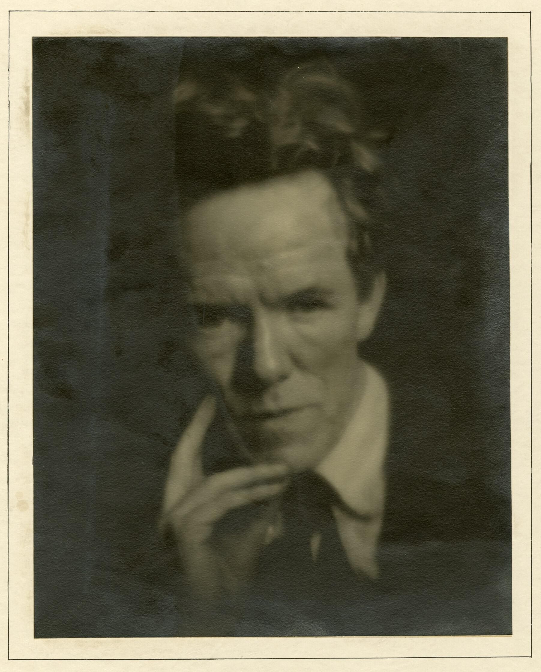 Portrait of Frederick Horsman Varley (1881-1969), Group of Seven and Official Canadian War Artist, 2015. Photographic reproduction from the undated b/w photograph by Harold Mortimer-Lamb, RPS (1872-1970). Royal B.C. Museum and Archives