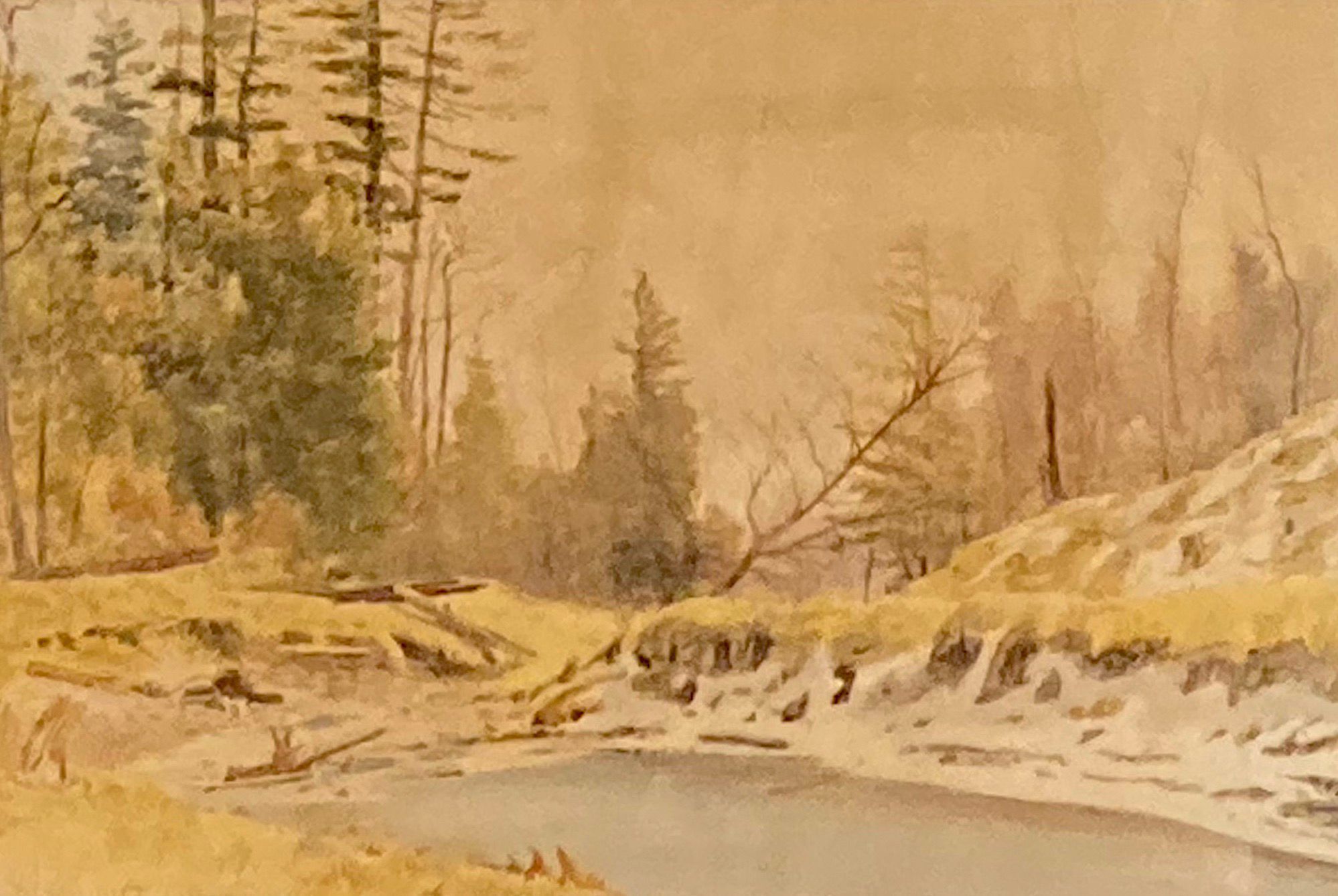 Martin was mostly self-taught as an artist, immigrating to Canada in 1862, settling first in Muskoka, and later in Toronto where he became an established professional painter. Martin produced works in watercolour, oil and etching, and his landscapes were said to have made Canada’s scenery famous in many parts of the world. He was one of the “Railway Painters” group that included Lucius O'Brien RCA (1832-1899), Frederick M. Bell-Smith RCA (1846-1923), Marmaduke M. Matthews RCA (1837-1913), Forshaw Day RCA (1831-1903) and Martin. This was done as part of the Canadian Pacific Railroad program for well-established Canadian artists to record the completion of the transcontinental railway and the landscape.