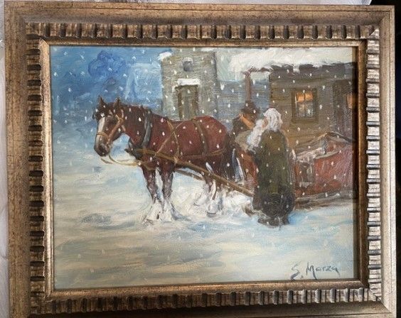 Once in Canada, he further studied at the Kootenay School of Art. He then studied art restoration and conservation in San Miguel de Allende in Mexico, and later in Sonoma, California. He had a long association with Victoria’s “Little Gallery” and undertook restoration work with Leslie Agghazy, Restoration Studio in Sidney. He was very active in the local arts community and enjoyed varied artistic passions. He painted a wide variety of subject matter from European fin de siècle café/bistro life, interior shop scenes, village vistas, swirling dancers and prairie landscapes with horses.