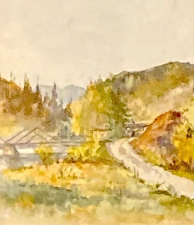 Of note, in addition to The Bristol Savages connection, his family has a long history of involvement in the arts with his grandfather, father and uncle all working as landscape artists. His son, Rex (1881-1965), had a photographic studio in Salmon Arm and his great-grandson, Chris Cran RCA, is an award-winning visual artist based in Calgary, Alberta who is best known for his tongue-in-cheek, trompe l’oeil compositions.