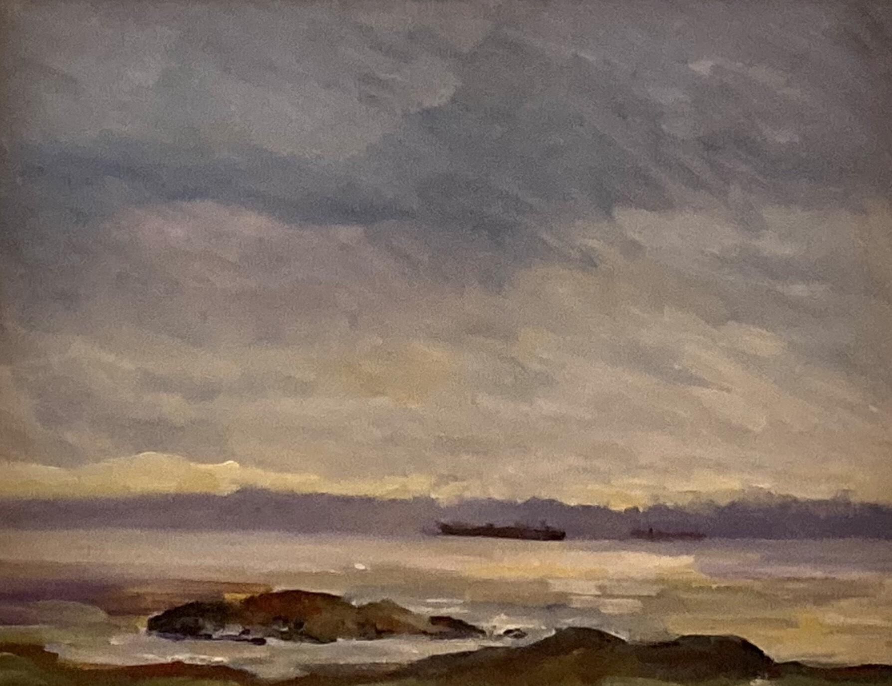 Born in Montréal, Québec, Jesi Keane Barron is a Canadian plein air and studio artist specializing in sea views.  In the 1940s she attended museum art classes run by Canadian Group of Seven artist Arthur Lismer (1885-1969) through the Art Association of Montréal at the Montréal Museum of Fine Art School of Art and Design. She later moved to Victoria, B.C. with her family where she continued her interest in the arts. She designed costumes for the Victoria Theatre Guild, later studying at the Vancouver School of Decorative and Applied Arts (now the Emily Carr University of Art and Design).
