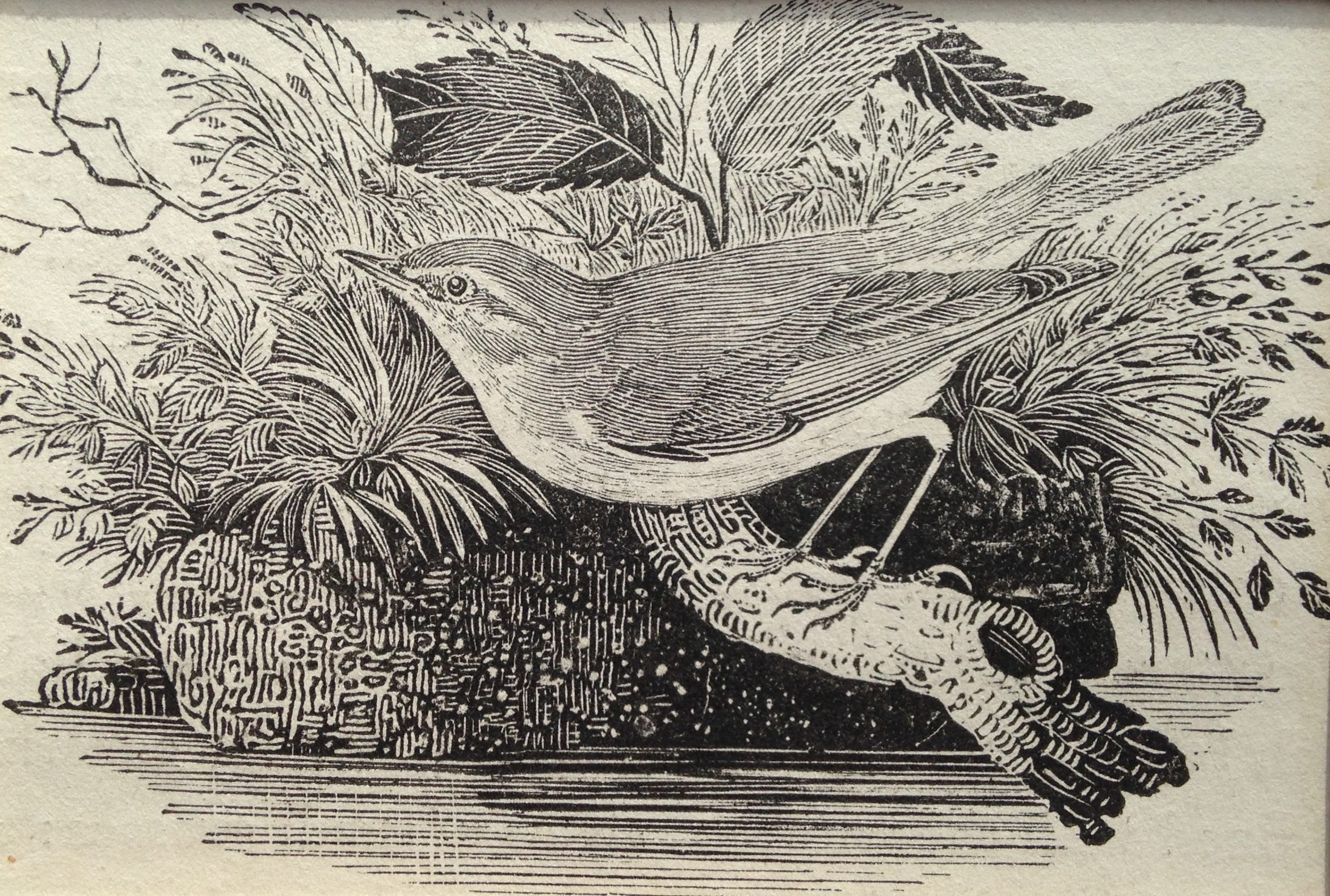 Wood engraving on paper, an illustrated page from Thomas Bewick's (1753-1828) ca. 1797 "A History of British Birds Vol. I: Containing the History and Description of Land Birds", Bewick and Longman (England).