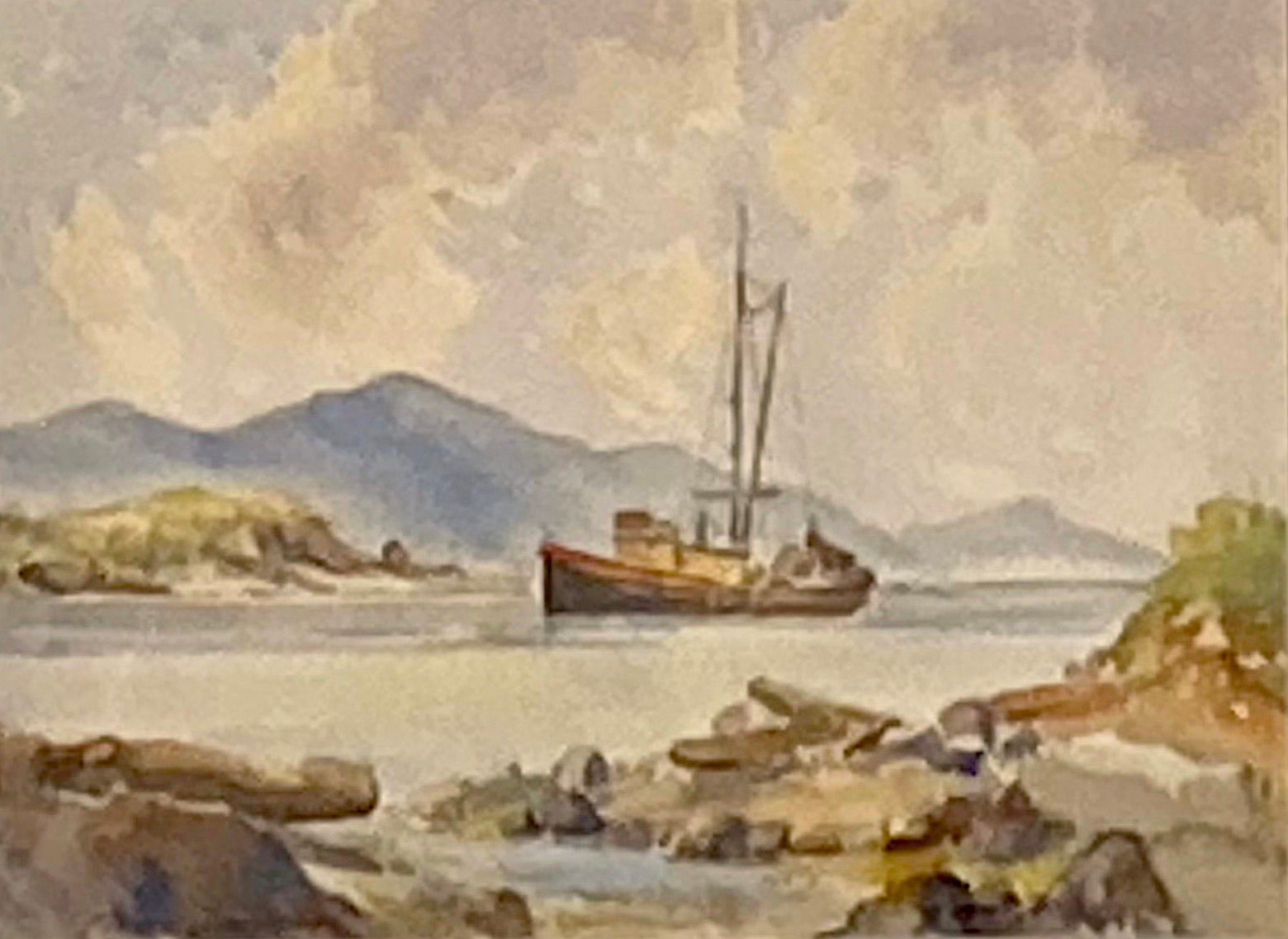 By Cecil Augustus de Trafford Cunningham: 2017.04.01 View with a Picnic Table, 1945 2017.04.02 Trawler in the Bay 2017.05.08 Coastal View: Boathouse and Sailboat, 1940 2017.05.18 Beached Dinghy 2018.08.08 Coastal Scene 2025.09.05, Stone Church, Cowichan