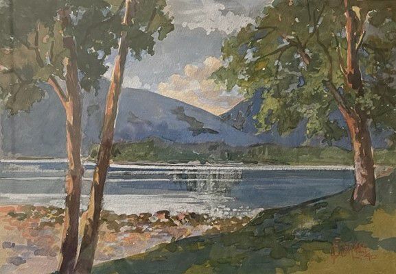 Born in London, England, Charles (Charlie) Frederick Barker, was a Victoria-based artist who immigrated with his family to Vancouver at age 13. After arriving in B.C., he was employed in a variety of jobs and in the late 1920s took art lessons from two artists well-known in western Canada, John Clarke Innes (1863-1941) and John Radford RCA, (1860-1940). Around 1930, the Barkers moved to Victoria and Charlie became manager of the Durable Mat Company and later worked as a clerk at the Yarrows shipbuilding site. He still diligently pursued his art career and joined the Island Arts and Crafts Society, becoming a regular exhibitor from 1931 to 1938, and again in 1941. He served one year as Society President in 1936-37, and his work was shown at an exhibition at the Vancouver Art Gallery in 1939, as well as in Toronto.