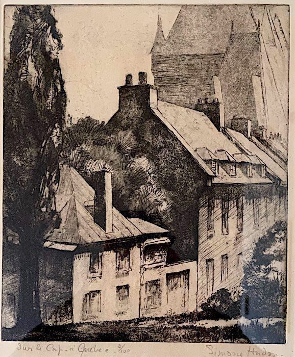 Hudon-Beaulac's love of old Québec and its landscape is clearly reflected in both her paintings and etchings. She won numerous awards during her career, and exhibited widely, notably with the sculptor and fellow Québecois artist, Sylvia Daoust RCA, (1902-2004). A member of the Society of Canadian Painter-Etchers and Engravers, and the Canadian Society of Graphic Art, Hudon-Beaulac's work has been exhibited many times, in both North America and Britain. She is well-known for her illustration of the book entitled "Au fil des côtes de Québec" which was completed for the Canadian Centennial in 1967.Edition