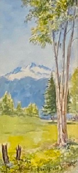 Born in London, England, Helen May (Nellie) Duke was a Canadian painter, who spent her younger years in India where her father was a British Army doctor.  She was reportedly formally trained to paint by a British military topographical artist. In India's summer months, the Duke family moved to cooler northern climes, beginning Nellie's love affair with mountains. In 1903 the family moved to Switzerland and then to Germany, where Duke completed her formal education and became interested in watercolour art. She returned to England, later Guernsey and served with the Red Cross Society in France in World War I from 1915 to 1917 and then did nursing in Surrey. She later made her way to B.C., first to Vancouver in 1925 and then to Monte Lake where she had a large farm and also served as the post mistress. She exhibited in the B.C. Artists Christmas exhibition at the Vancouver Art Gallery in 1933, and also the 1938 B.C. Artists Annual exhibition. She was a founding member of the Federation of Canadian Artists in 1941.
