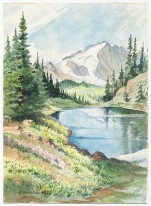 In 1939 she moved to Kamloops and later to the Okanagan Mission district of Kelowna, becoming a well-known fixture of the cultural community and a strong advocate for the arts. Here, in addition to her own painting practice, she wrote plays, organized an opera and art exhibitions and gave singing lessons. She was also a founding member of the Kelowna District Art Group in 1947 and in 1975, her achievements were acknowledged with the Honour in the Arts Award by the City of Kelowna. Duke was recognized as an accomplished painter who captured the beauty of natural scenery from Mount Revelstoke, the Shuswap, Salmon Arm and down through the Okanagan to Kelowna.  Duke never married, passing away in Kelowna at the age of 91.