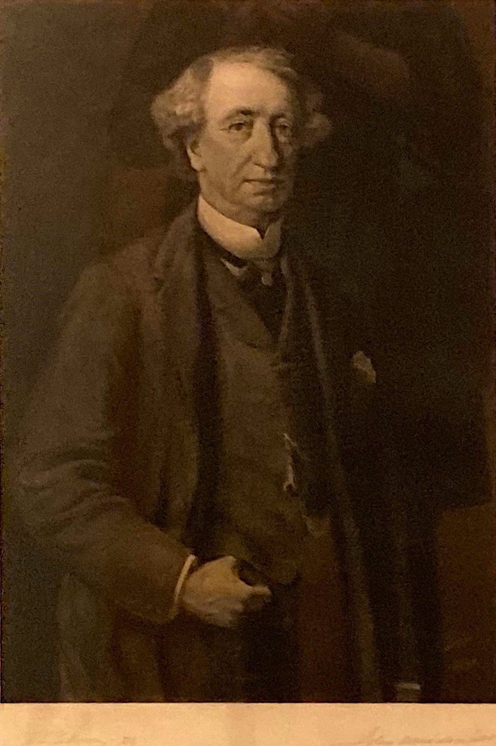 Patterson was the only artist that Canadian Prime Minister Sir John A. Macdonald agreed to have paint his portrait. The sittings took place in Macdonald's home near Rivière-du-Loup, Québec in 1885, with the painting completed in 1886. In 1888 Patterson took his canvas to Paris via London to have the portrait reproduced as a limited edition photogravure by Goupil & Cie, world leader in the art and publishing industry of the day. Over the next several years, a number of these prints made of the original portrait were signed in pencil by Macdonald.