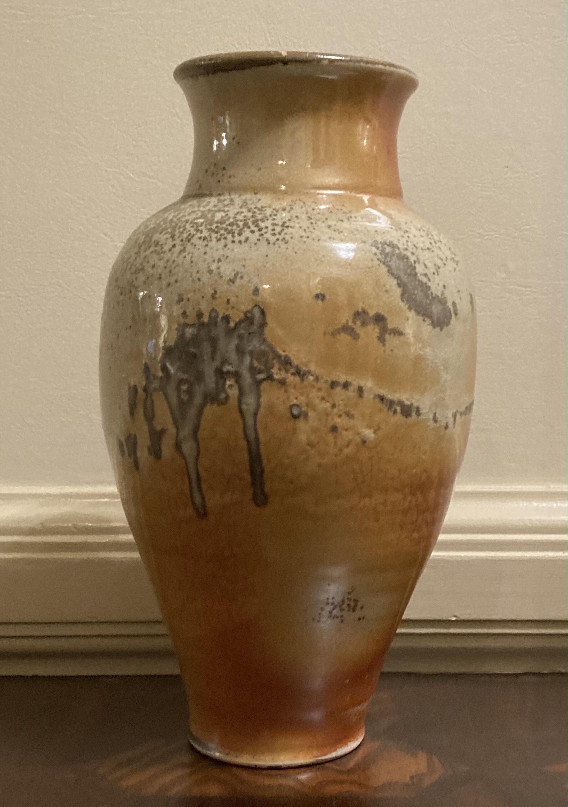 Creating pots from clay and fire is my celebration of life. I have gained my inspiration from observing plants, animals and rocks. These I interpret through ceramic sculpture and pottery forms. A vase becomes complete when holding flowers, foliage or grasses. A small frog climbing an urn is a metaphor for the beauty and fragility of nature.”