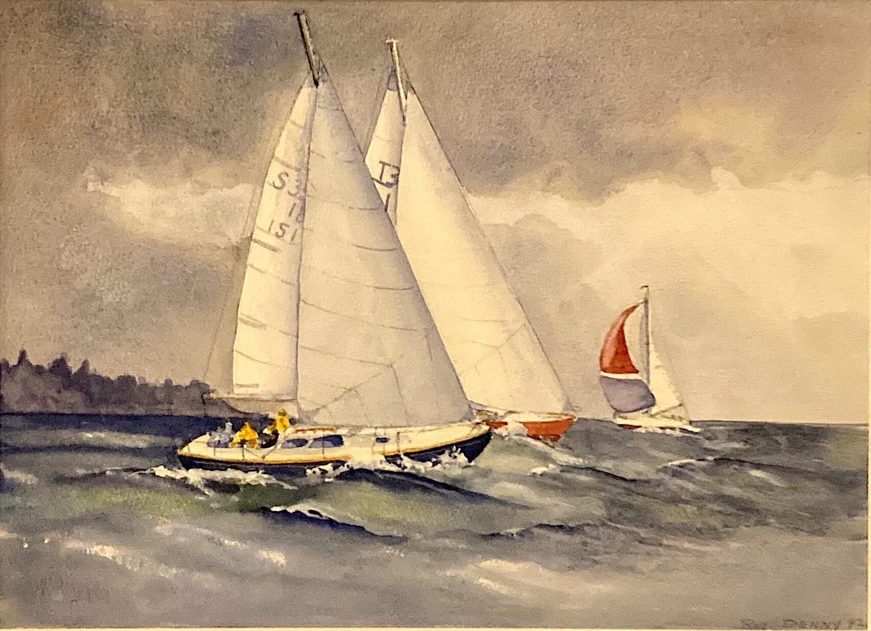 On retirement, Denny took up watercolour painting, most often with a focus on boats and seascapes. A skilled watercolourist, he was very active in the arts community in many ways, including the Island Arts and Crafts Society and the Victoria Sketch Club. Denny was still exhibiting and selling his art at age 100.