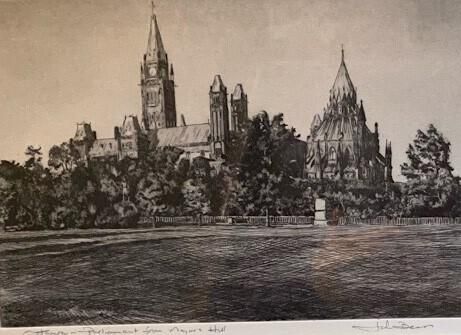 Titled lower left: Ottawa, Parliament from Major's Hill