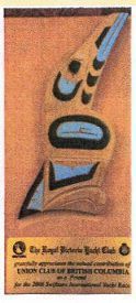 The carving has painted 'formline' detail (black and blue), a Pacific Northwest Coast First Nations art form distinguished by the use of characteristic shapes, such as ovoids, U forms and trigons used for figure outlines, design elements and composition.Type of Sculpture