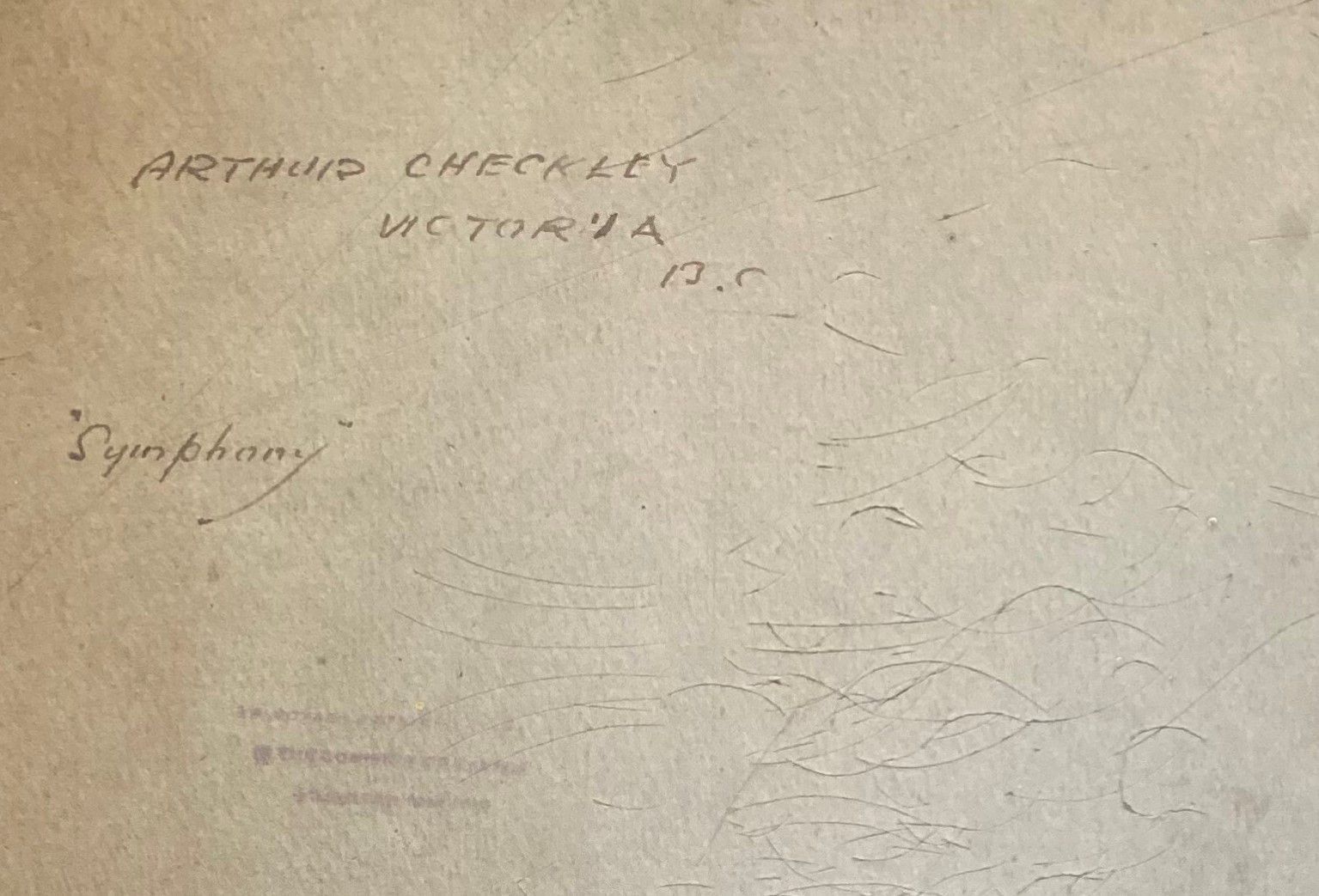 Born in Staffordshire, England, Arthur Checkley studied at the Birmingham School of Art. After immigrating to Canada in 1913, Checkley found success as an artist in eastern and central Canada. He arrived in Western Canada circa 1928 to be welcomed by the Island Arts and Crafts Society. He held a solo exhibition in Victoria, B.C. in the following year. His exhibited works in watercolour and oil depicted Vancouver Island, the Canadian Rockies and Saskatchewan scenery, and were reviewed in "The Daily Colonist" paper. Checkley, influenced by the famed Canadian Group of Seven, explored the abstract in his work, but he always retained the pictorial strengths in his art.