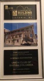 This multi-part award of excellence is from The Victoria Real Estate Board for Heritage Restoration of The Union Club of British Columbia, 2016.Context