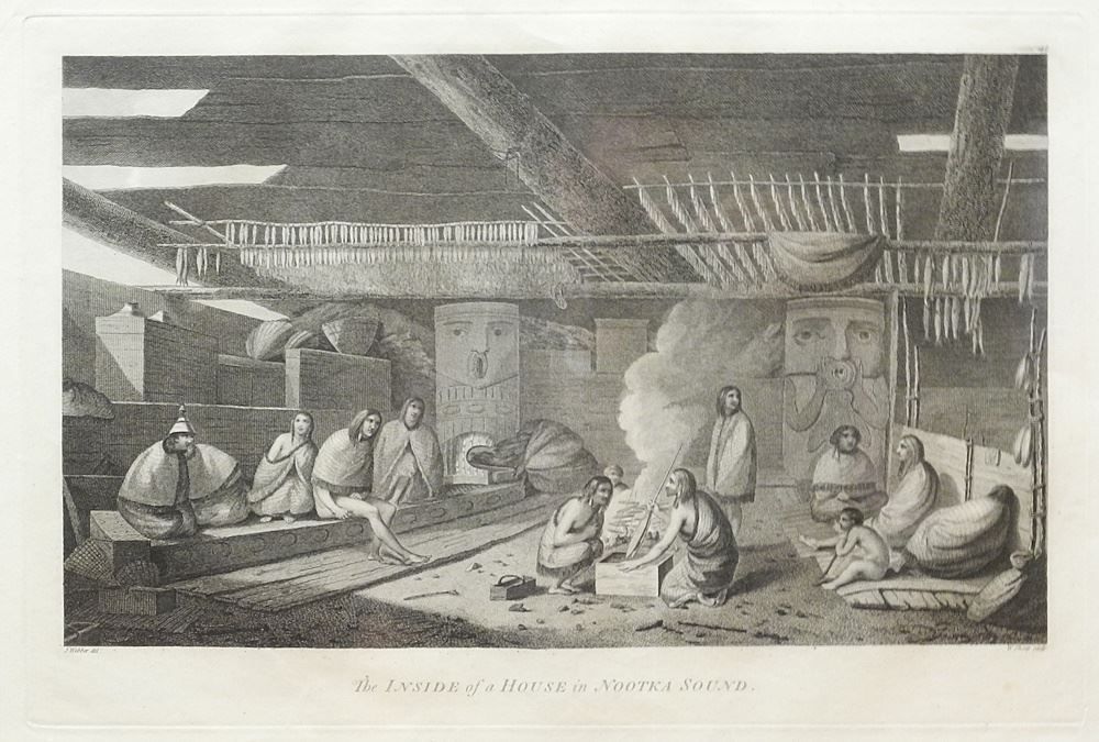 Lower centre: The INSIDE of a HOUSE in NOOTKA SOUND