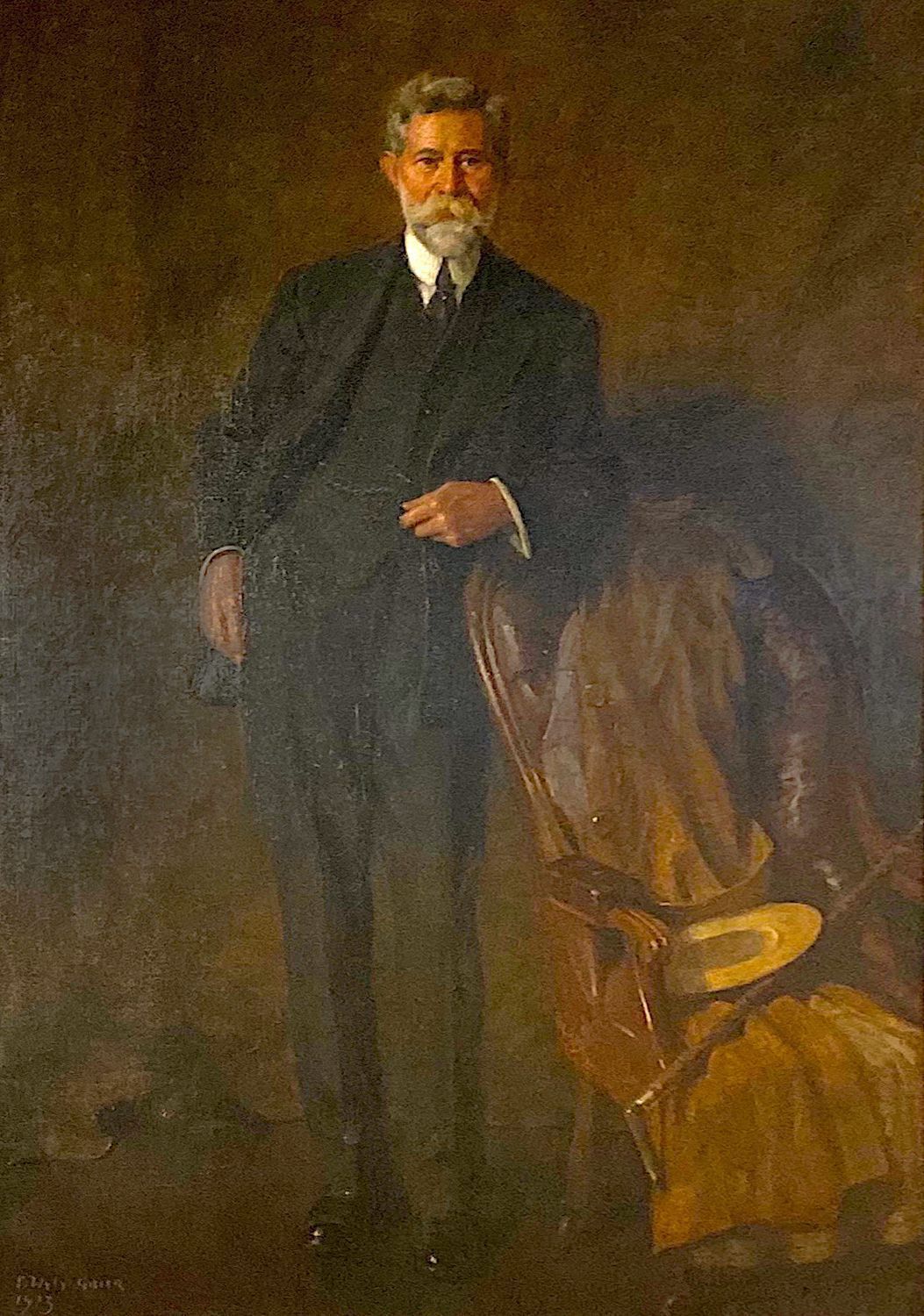Mara settled near Kamloops in 1869 and established the first fleet of steamboats in the area, later entering B.C. politics. He was elected in the Kootenay region, and then in Yale, and was later elected to the House of Commons for Yale. Mara moved to Victoria with his family in 1900. President of the Union Club from 1909 to 1913, he championed the idea of a new Union Club clubhouse in Victoria, B.C. and then oversaw its planning and construction (1910-13) on Gordon Street at Humboldt. In appreciation, Club members brought the notable portrait artist Edmund Wyly Grier, RCA from Toronto to paint this picture. The painting hangs in the Club's main stairwell to this day.