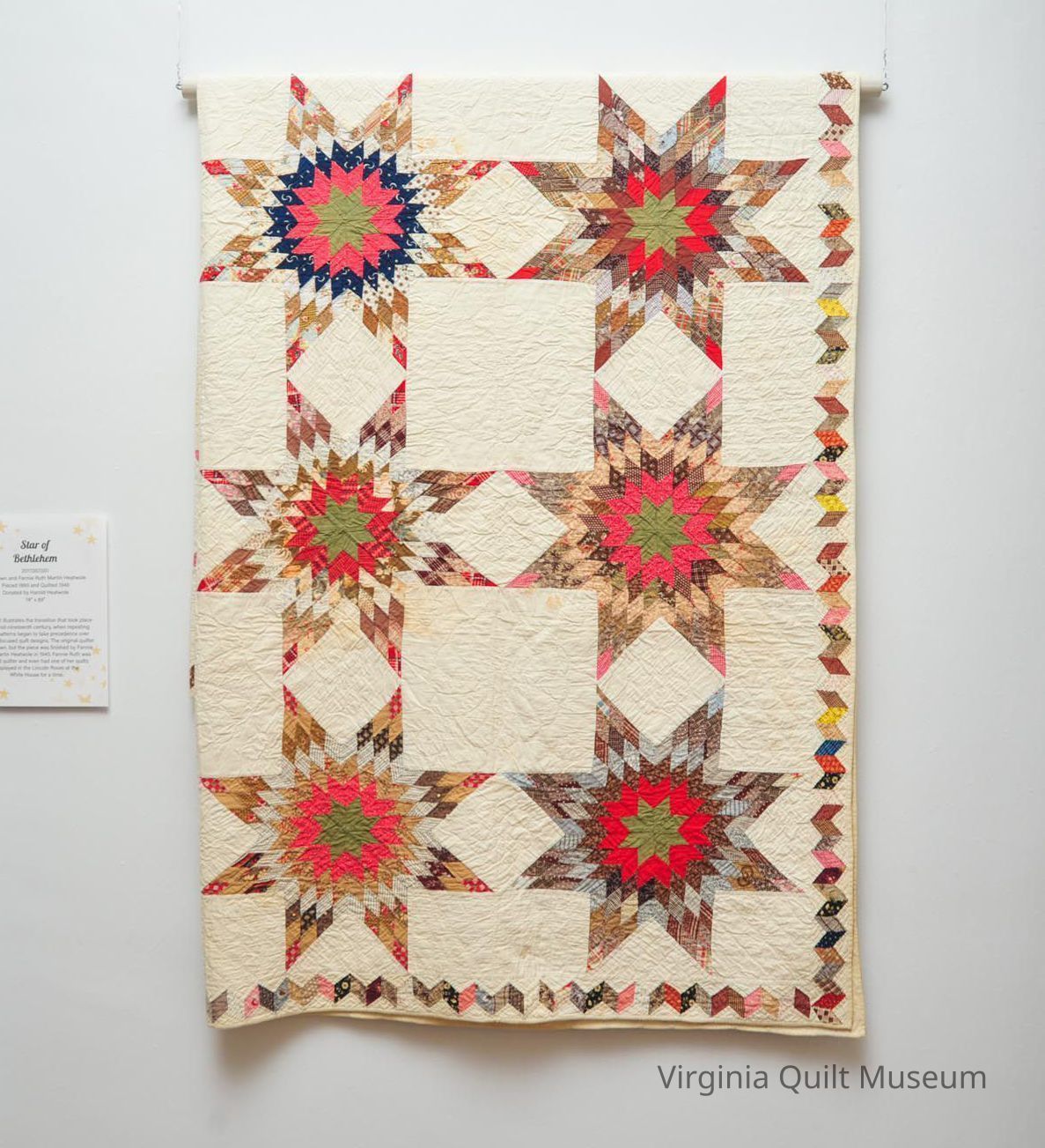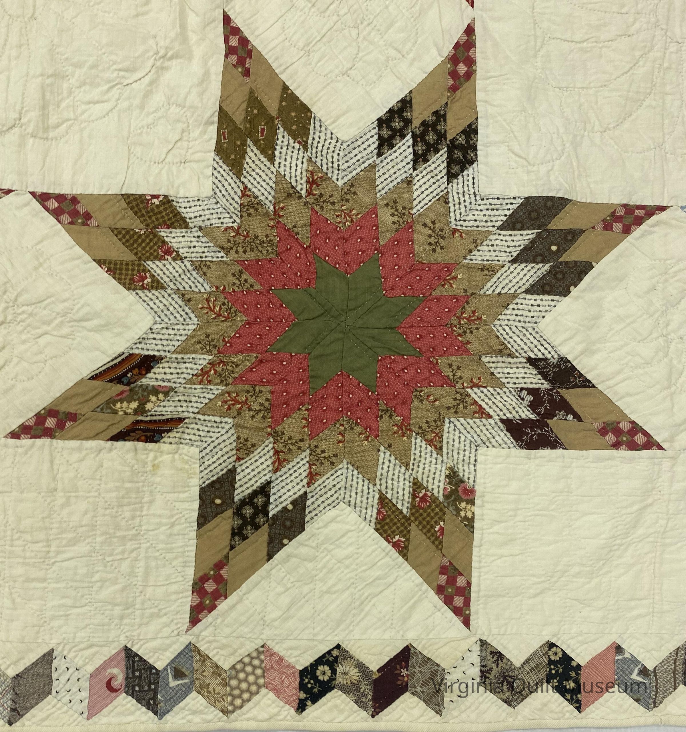 Pieced in the 1880's by an unknown person. The piece was quilted in the 1940s by Fannie Ruth Martin Heatwole (1904-2011).Collection