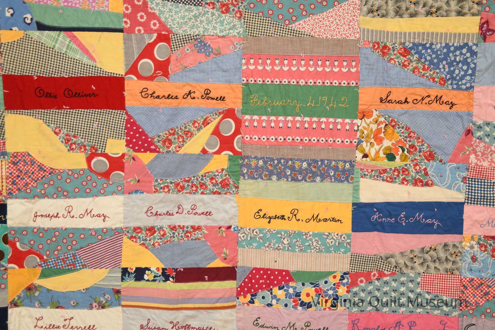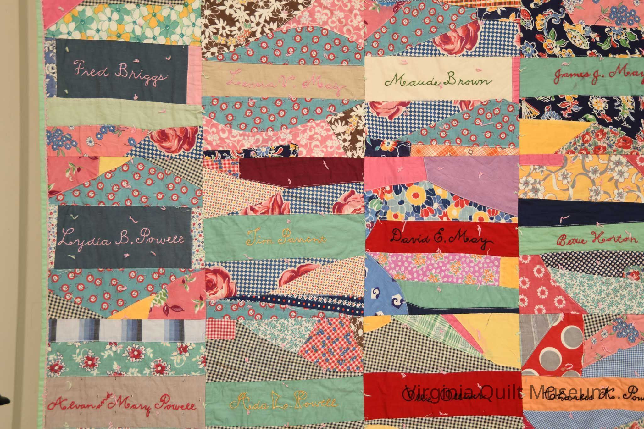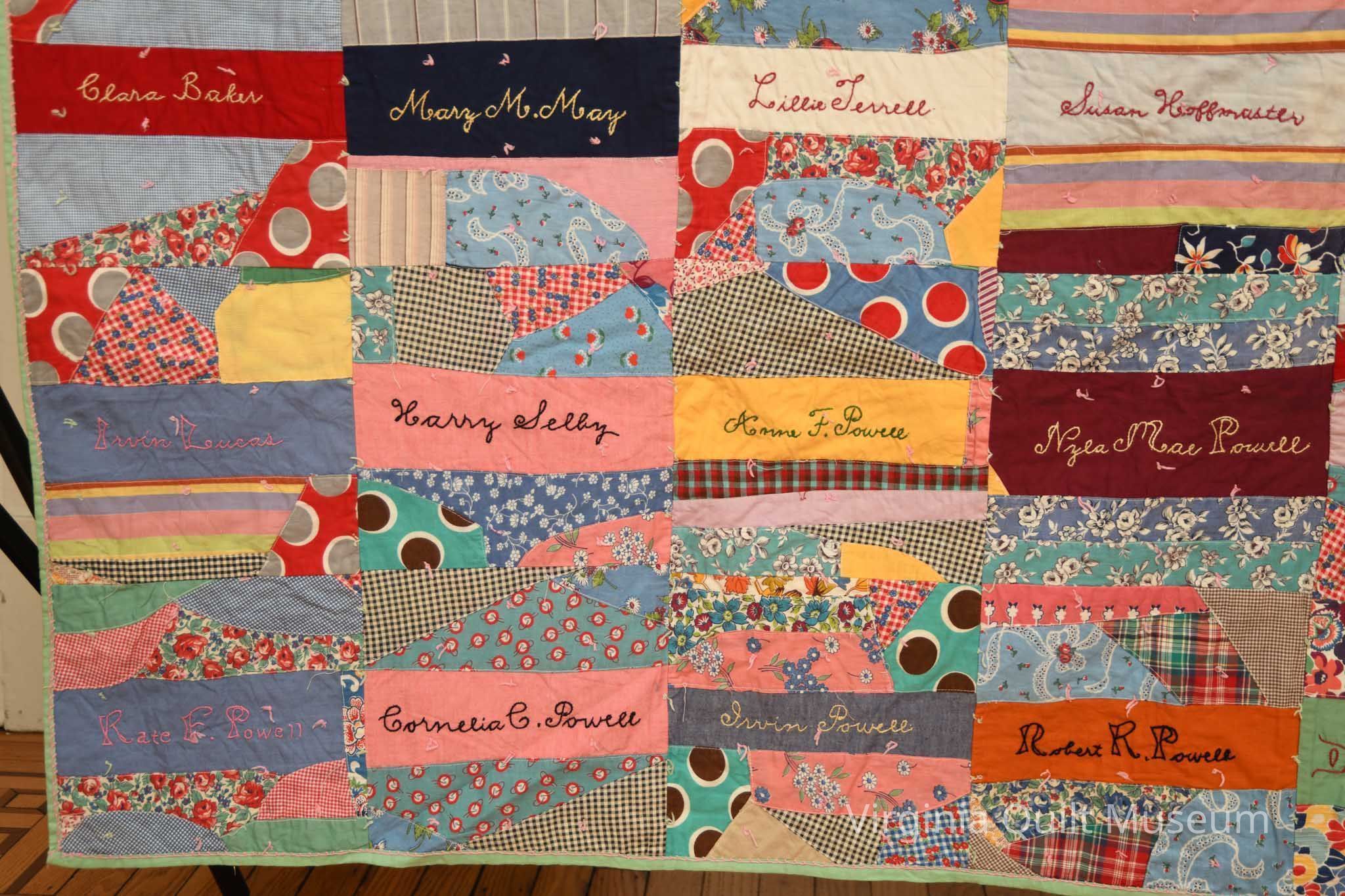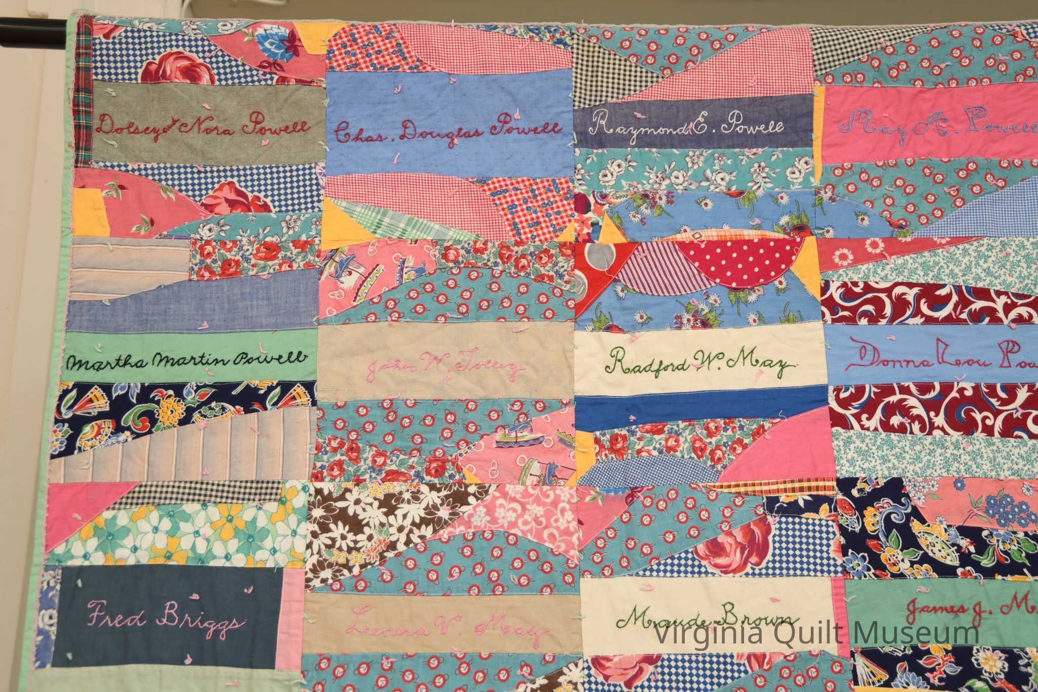 This quilt was found at a Goodwill and given to the Montgomery Museum in Christiansburg before it was gifted to the Virginia Quilt Museum. The genealogy reveals that the quilt was likely from Bedford, Virginia. Notable names include Powell and May.Collection