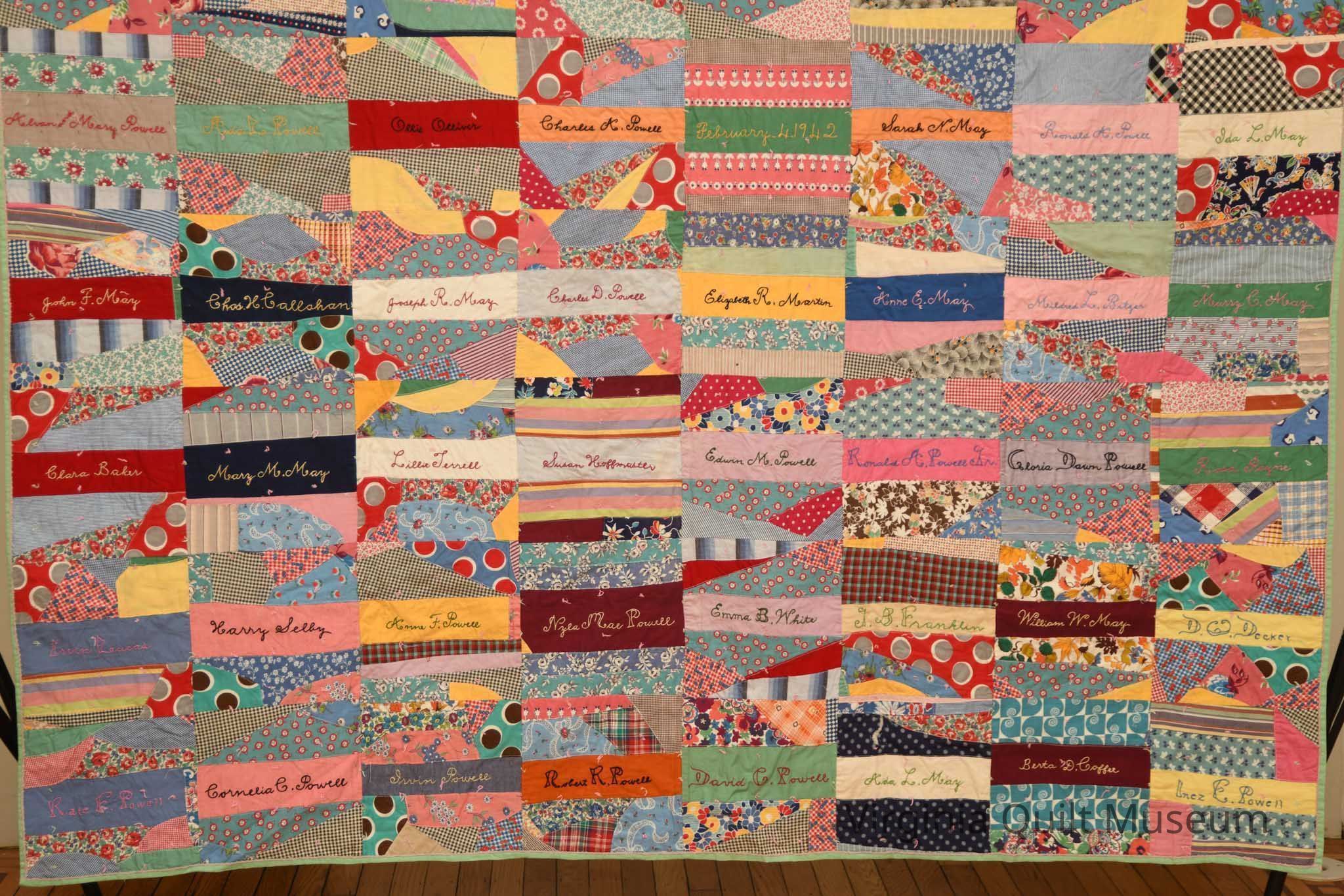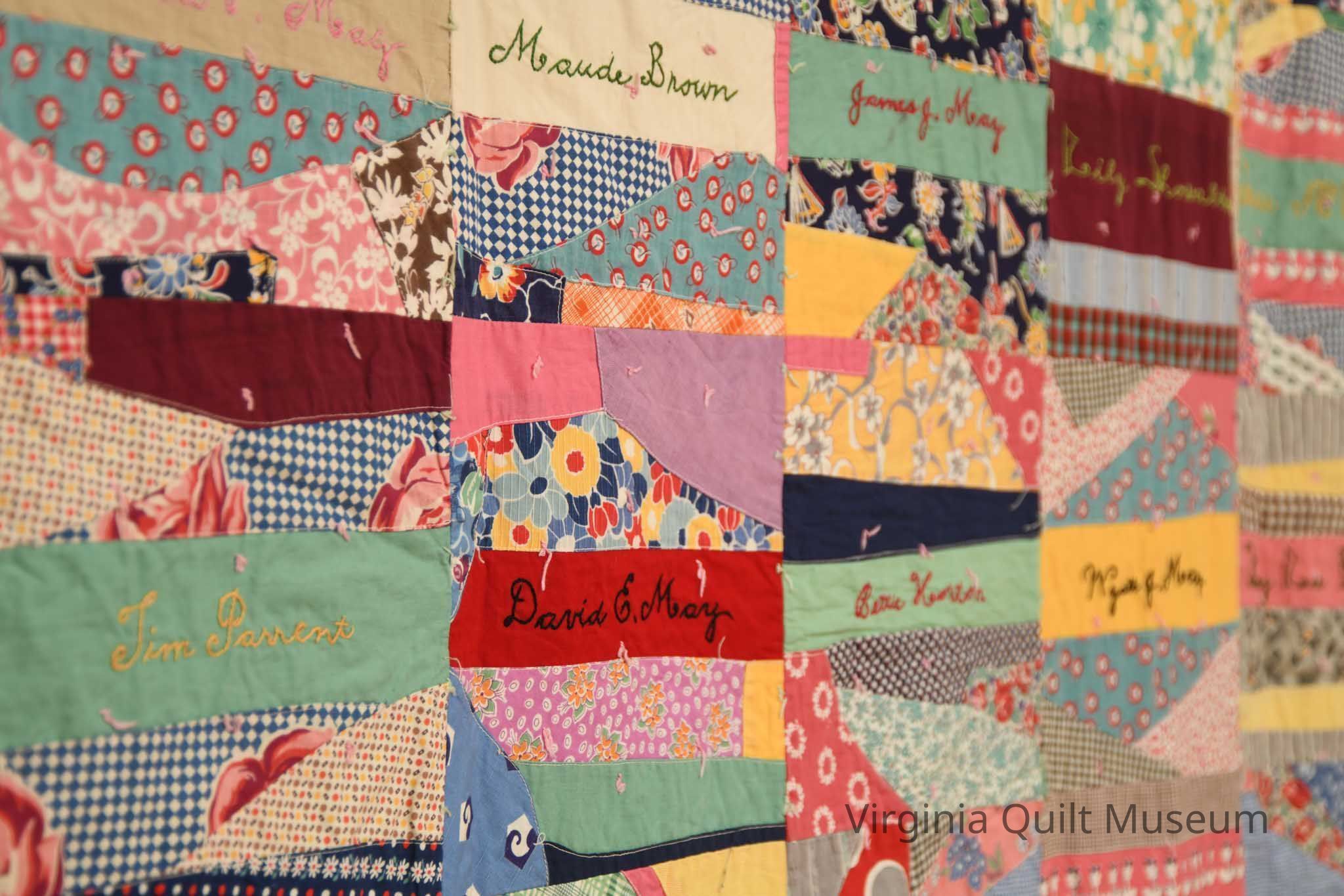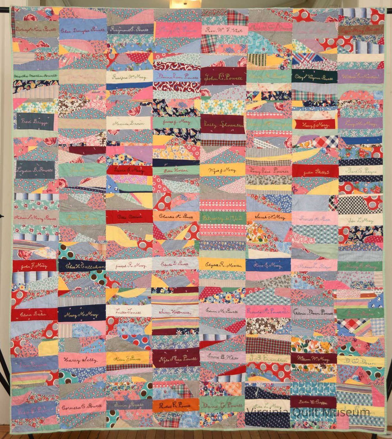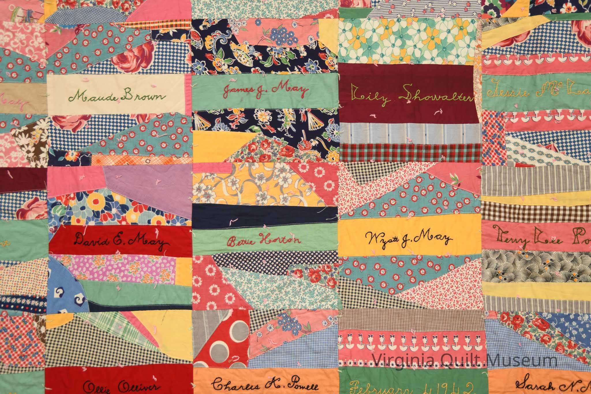 This quilt was found at a Goodwill and given to the Montgomery Museum in Christiansburg before it was gifted to the Virginia Quilt Museum. The genealogy reveals that the quilt was likely from Bedford, Virginia. Notable names include Powell and May.Collection
