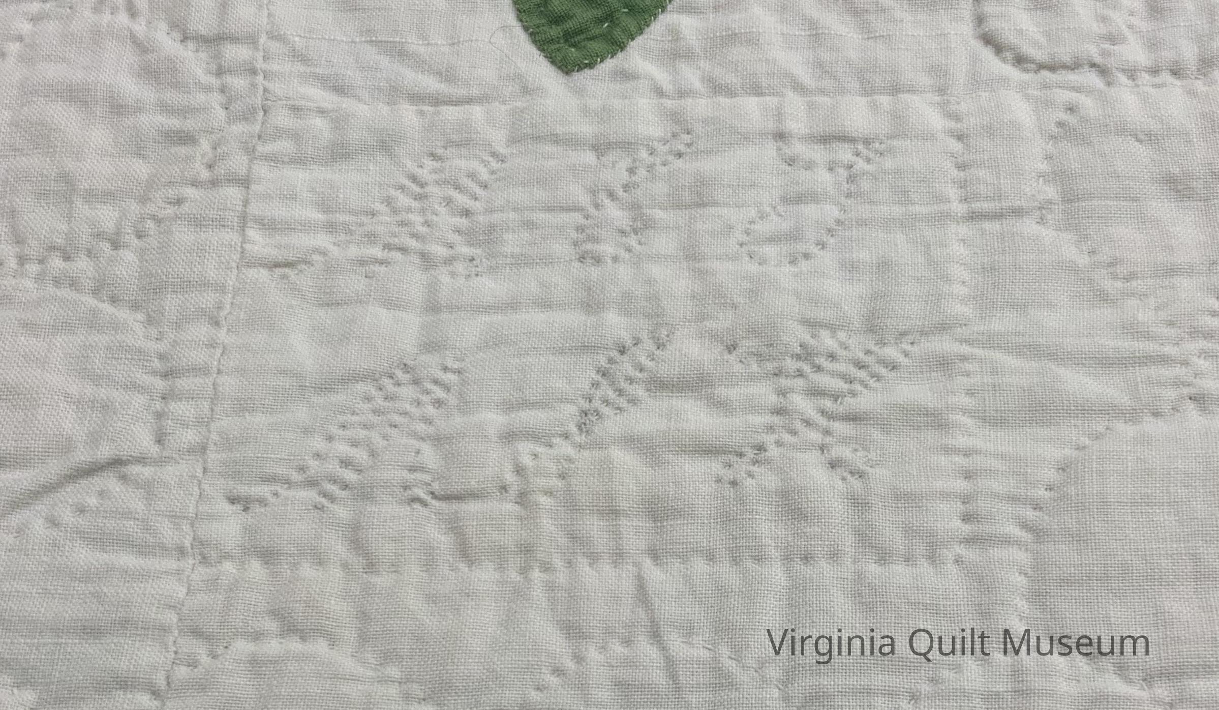 "MET" above "MJH" are together in the top left corner border, they are located in the border at the top left corner of the 1st block. "MS" is also done in the quilting, these initials are located on the second block from the top on the right of the quilt. The initials are quilted on the right side of the block by the border the M lines up with the bottom of the red part of the coxcomb and the S lines up roughly with the center of the red.Dimensions