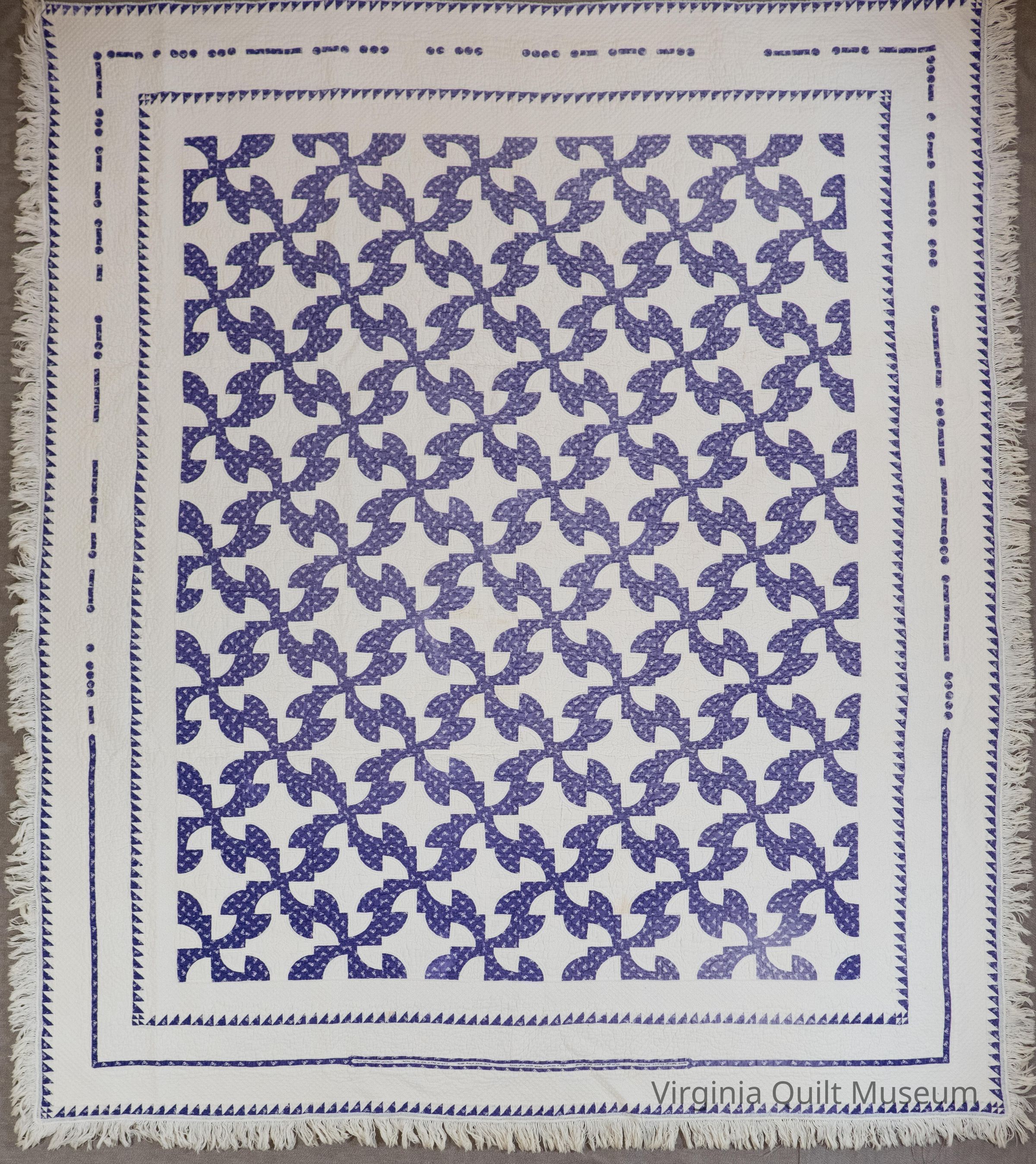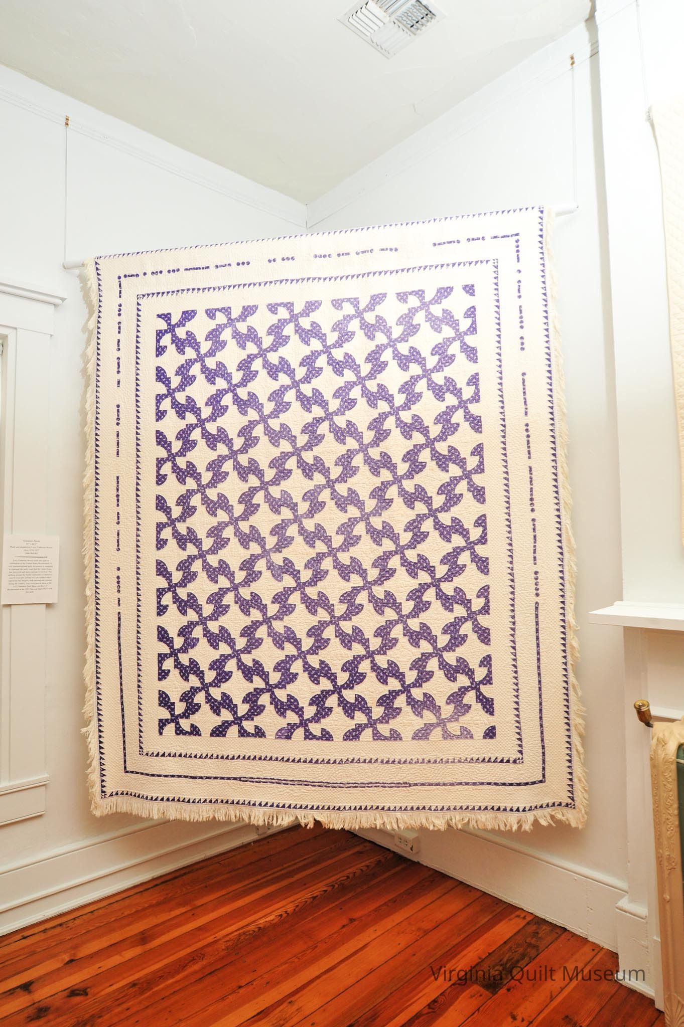 The quilting pattern in the border is continuous march of people (represented by seven lines for red stripes in the flag) intertwined and surrounded by vine of plenty, symbol of God's bounty provided in the land. The quilting in the center carries two lines for bicentennial.Context