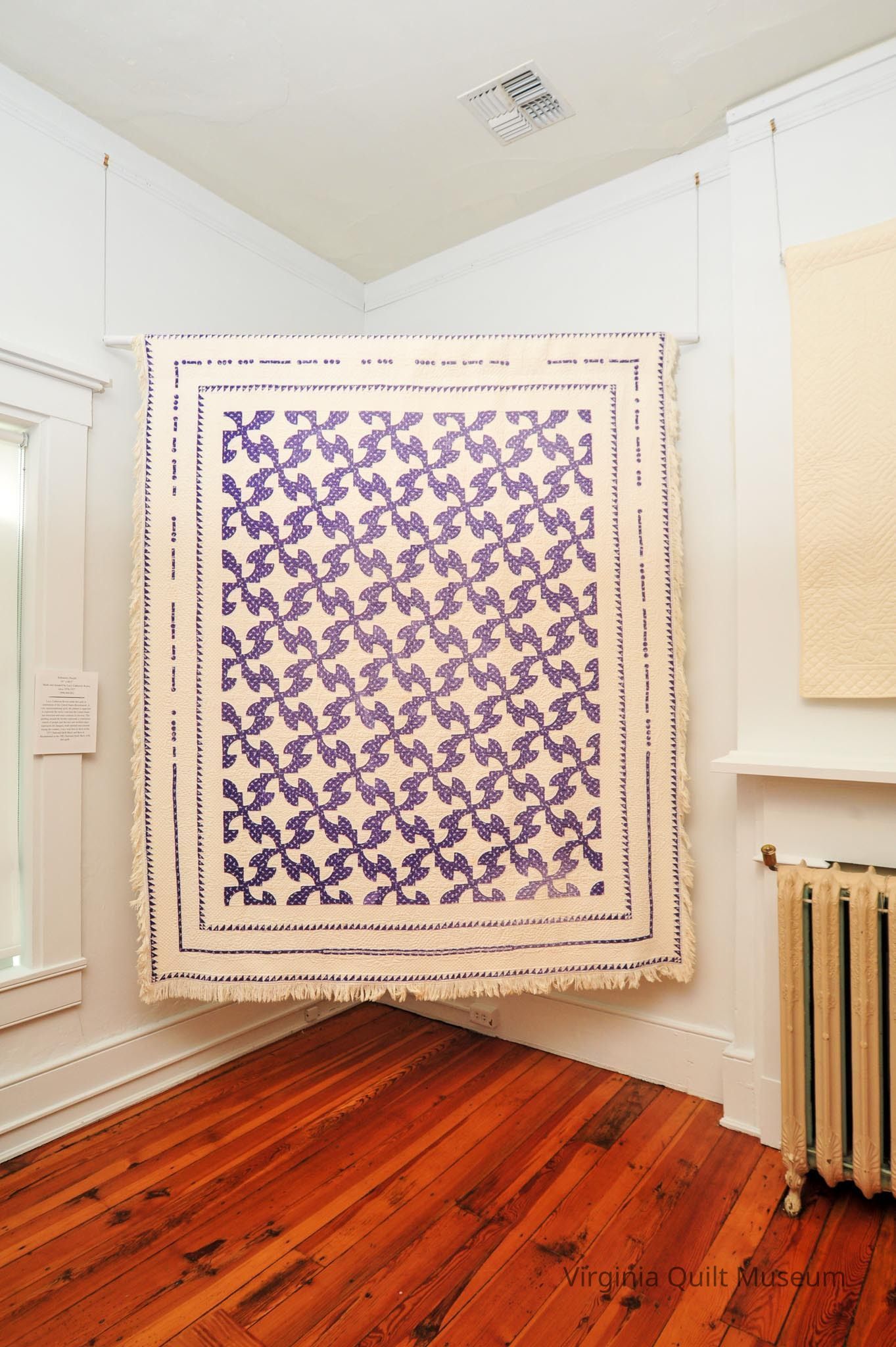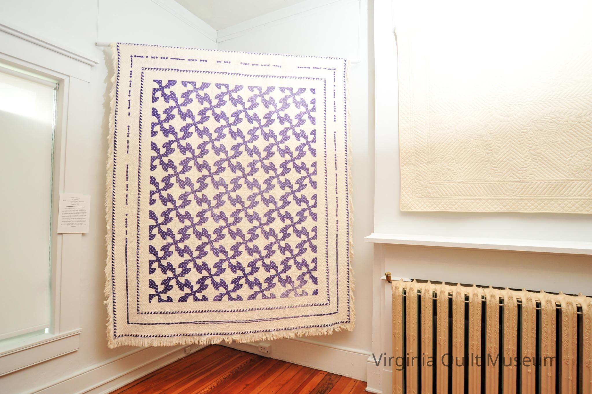 Lucy Catherine Bowie quilted this in 1977 as a tribute to the bicentennial of the United States. It won best in show at the 1977 National Quilt Show and Best of Bicentennial at the 1981 National Quilt Show. A very representational quilt, the pattern is supposed to represent the rocky road that the United States has traversed to and must continue to traverse. The quilting around the border represents a continuous march of people and the two saw-teethed edges represents the dangers, both internal and external facing the country.Collection