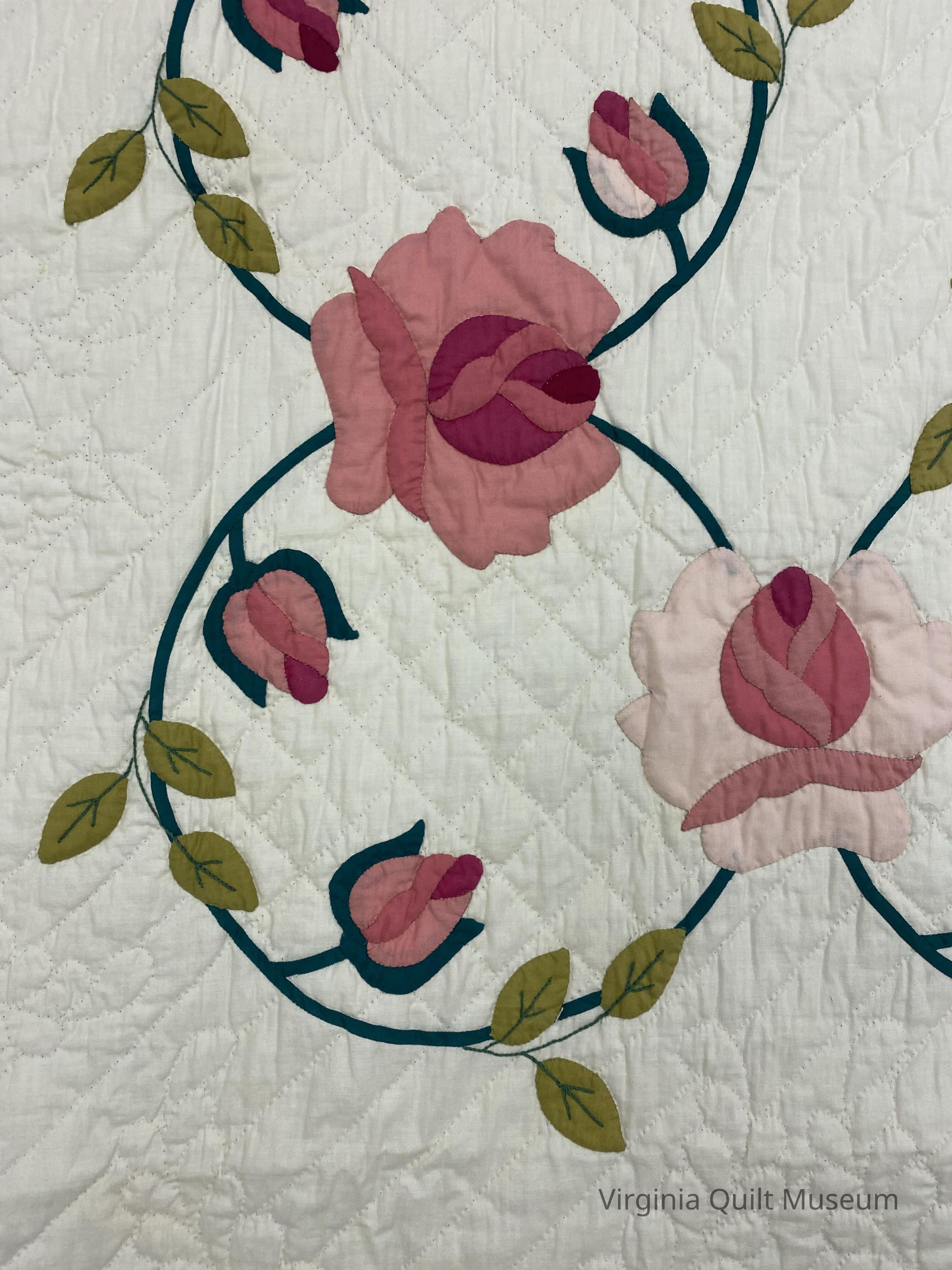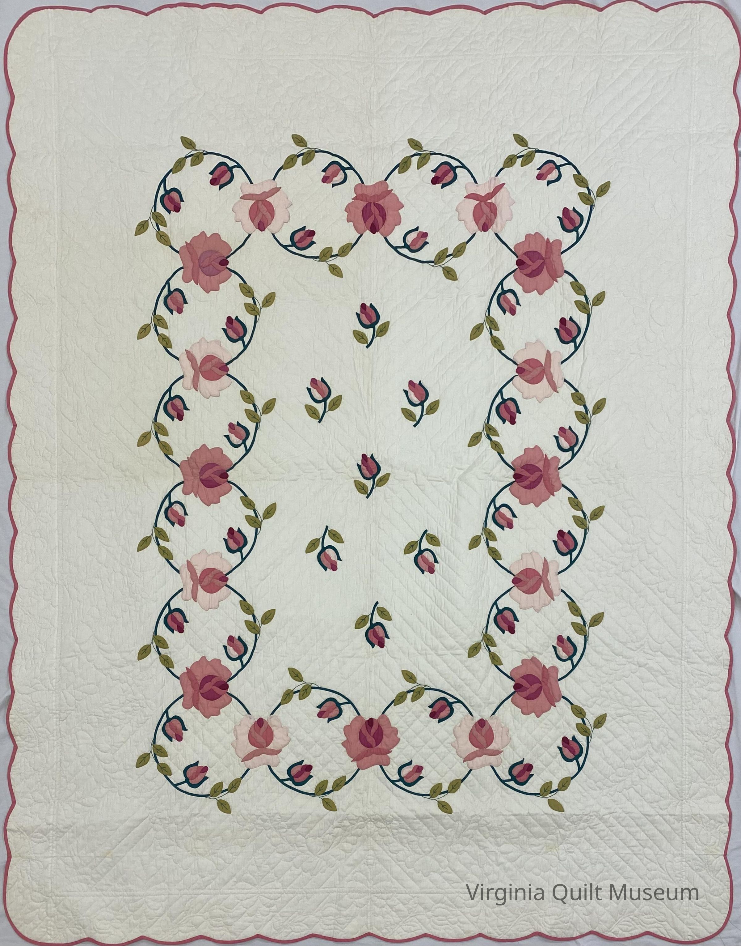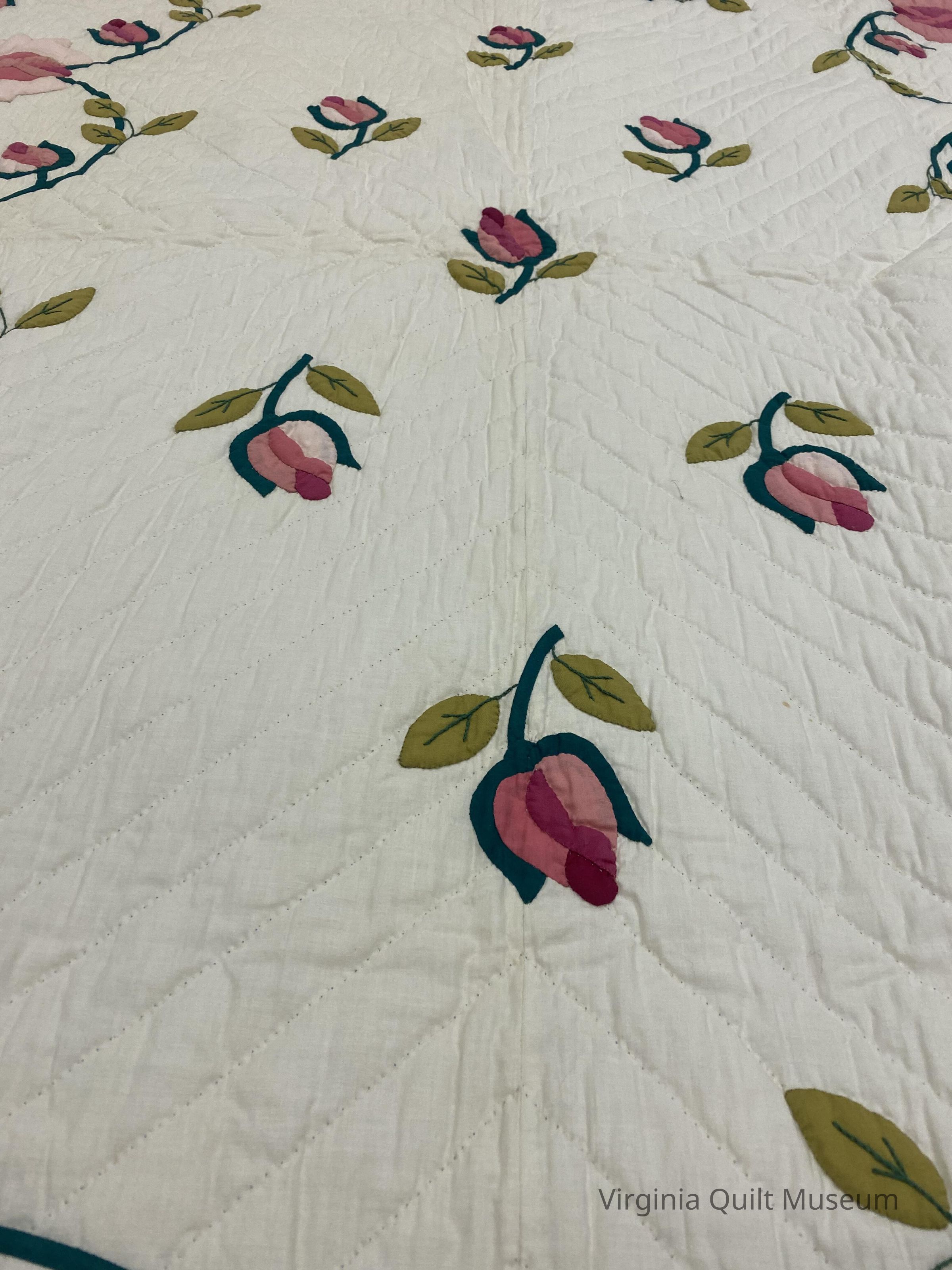 This quilt top was hand-appliquéd by Betty and came from a Bucilla Kit (#3285). After doing the hand appliqué on the top, Betty sent the quilt to be quilted by professional Mennonite quilters.Collection