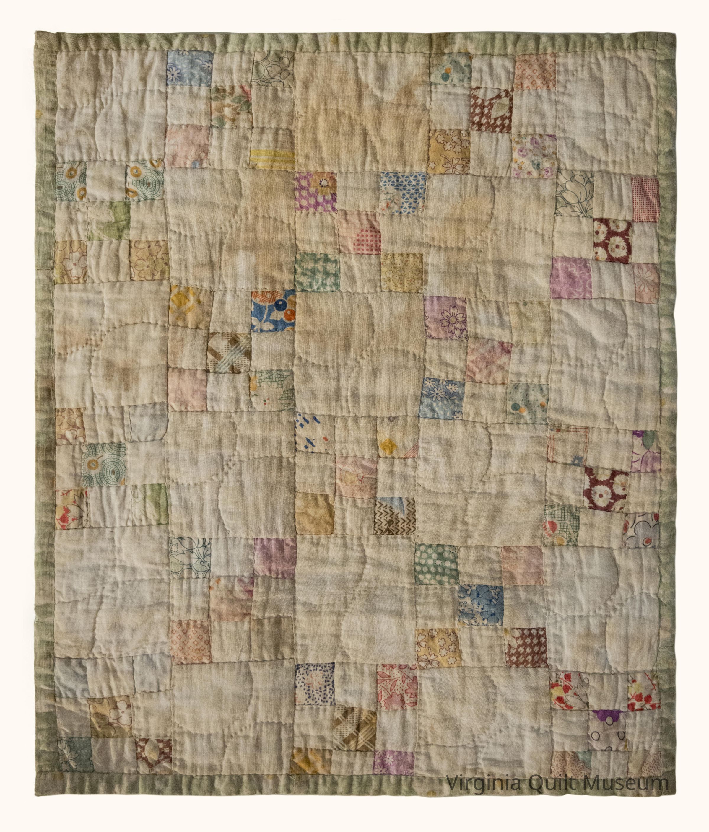 Nine Patch Crib quilt made during the 1930s.Context