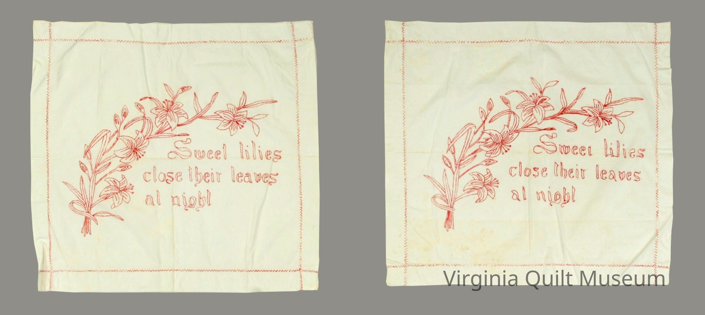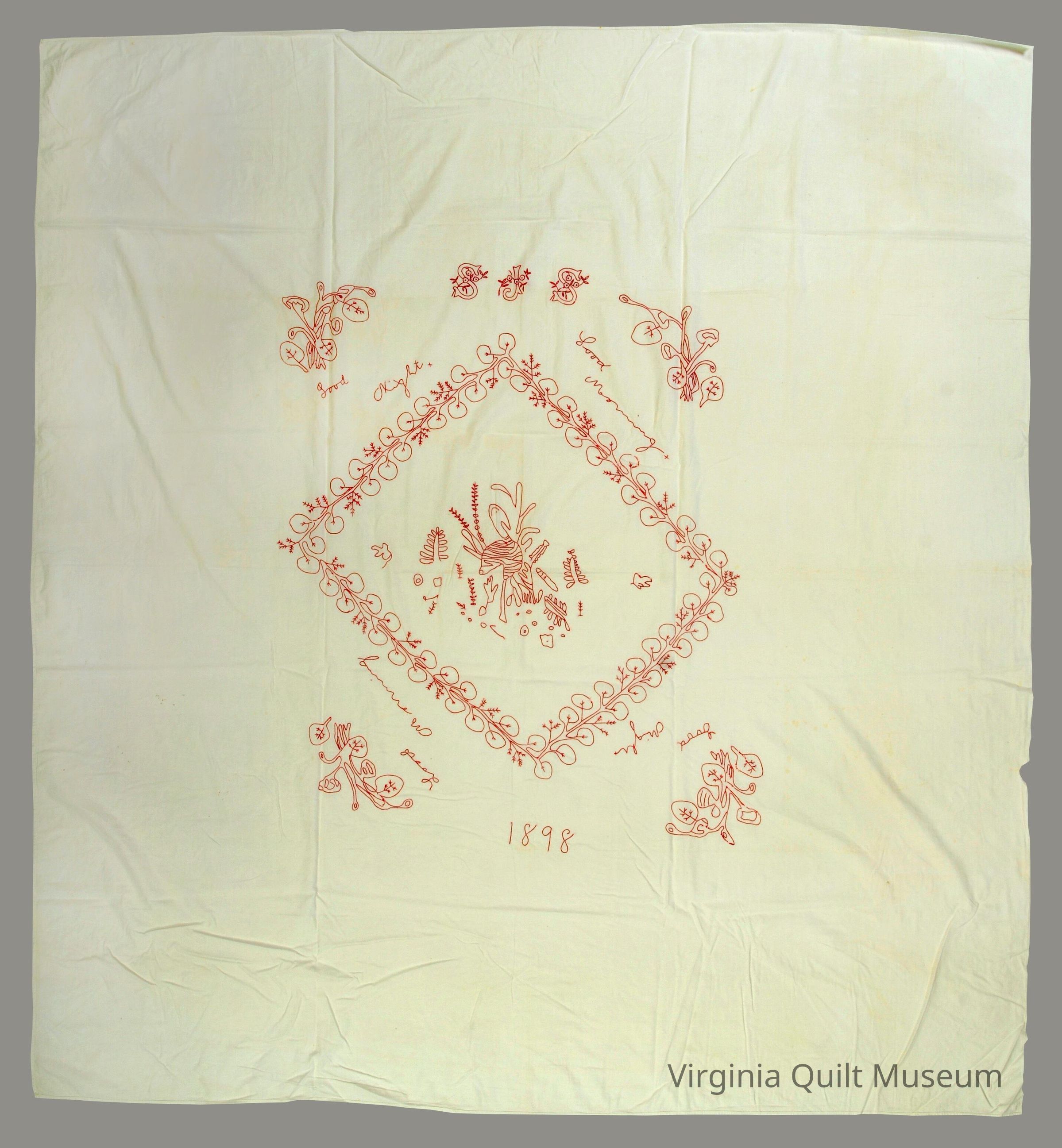 This spread was made roughly 1898. The quilt has the initials "SJS" on it and was perhaps made by the donors great-great grandmother Sarah Jane SandbridgeCollection