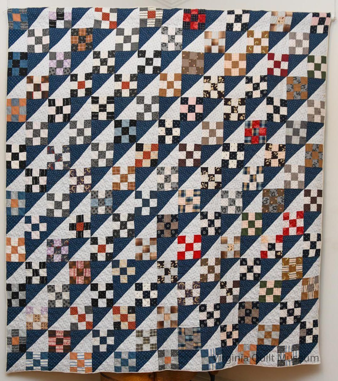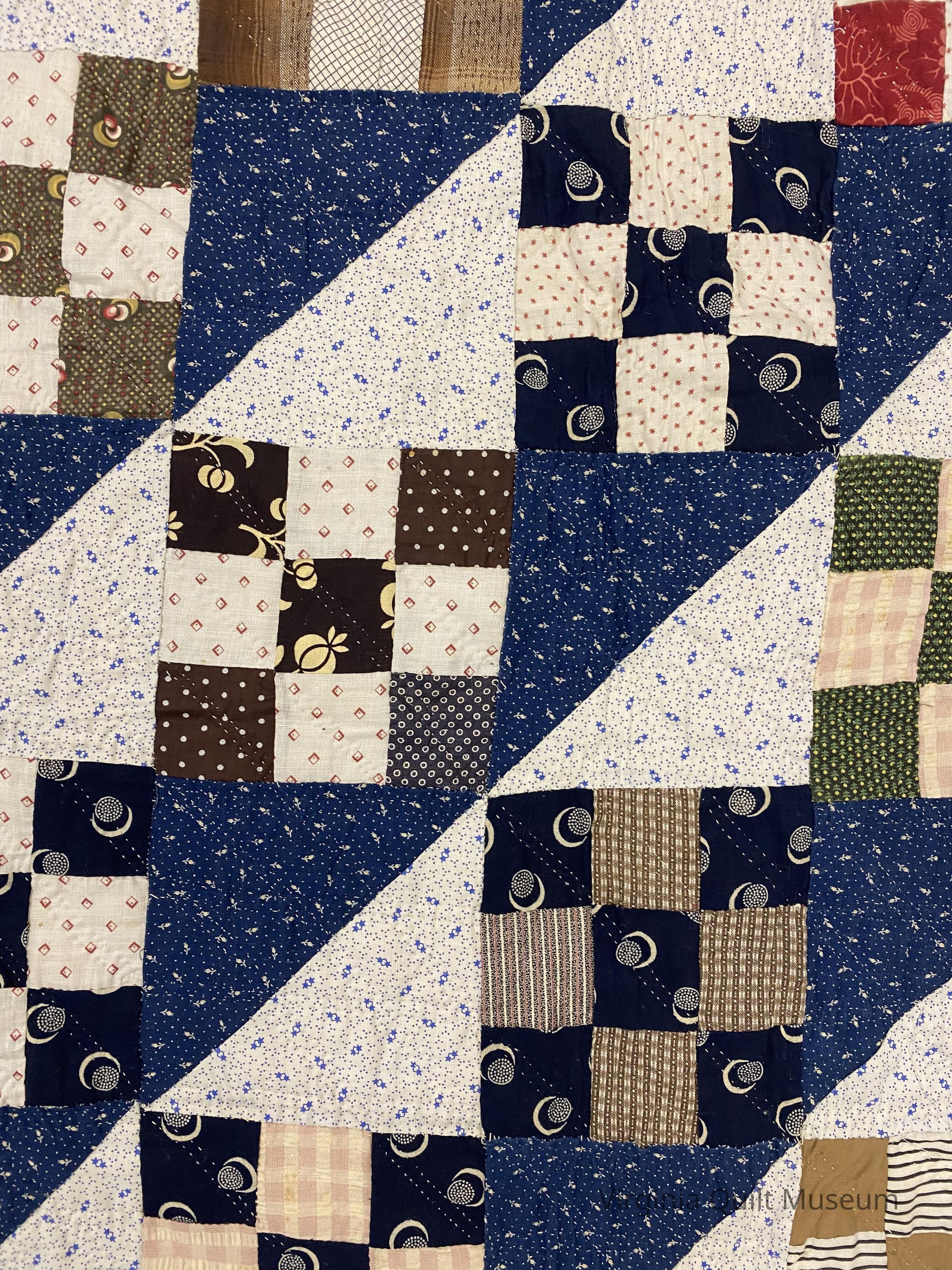 The quilt contains several nine patches, and the large triangles are quilted in a diamond design.Collection