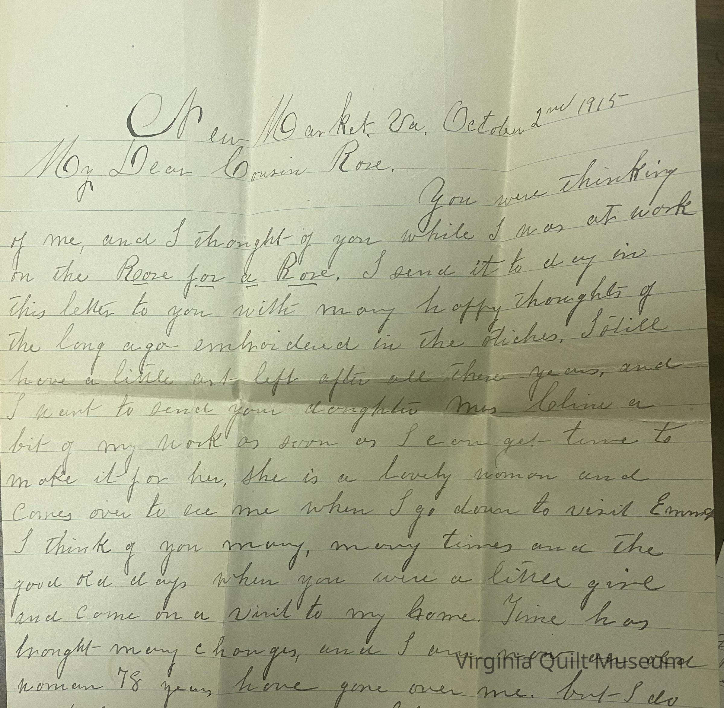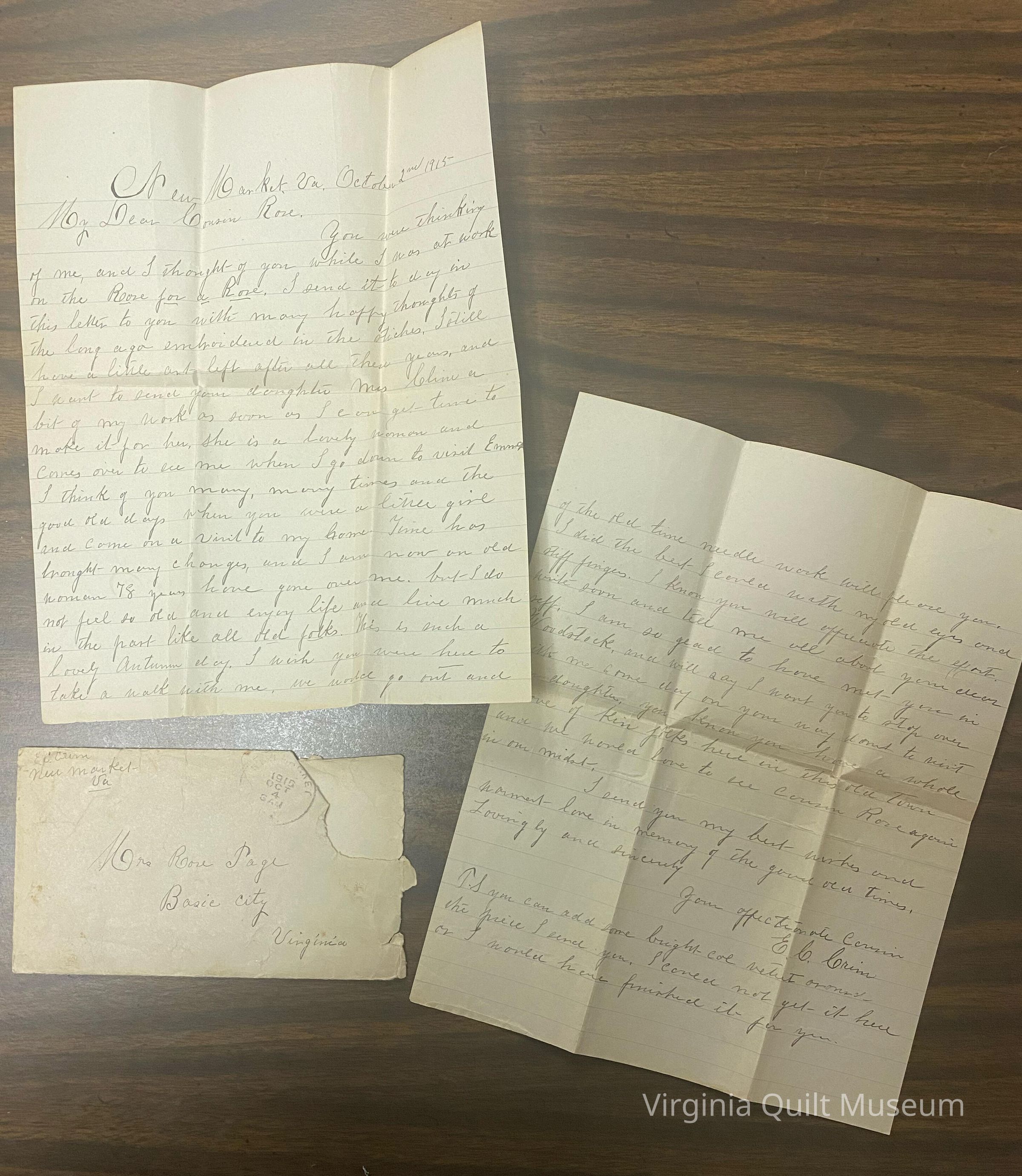Quilt blocks were made by several members of the Page family and put together and owned by Rosa Virginia Glenn Page of Staunton, Virginia.Collection