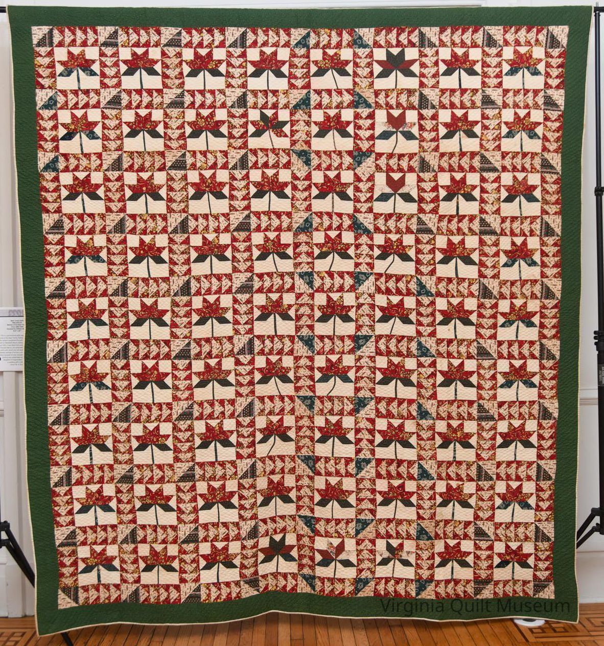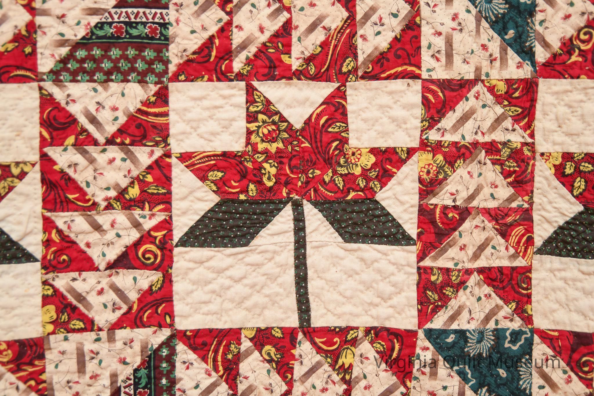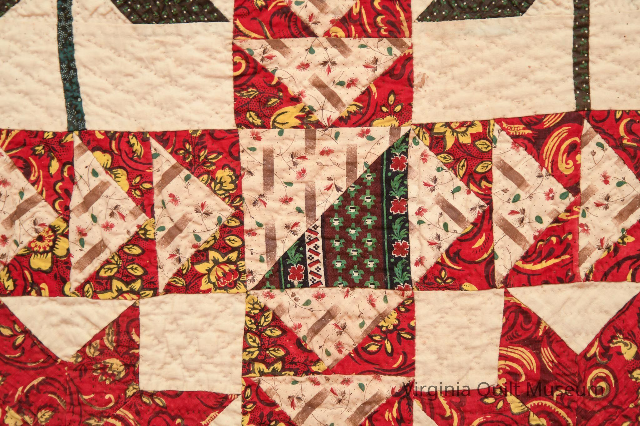 Made by 2 x great grandmother, her sister and their maternal grandmother (4x's great grandmother of the present owner). In a note with the quilt, the fabric was brought to them by their paternal grandfather (Joseph Fawcett) who came to visit from St. Charles, MO to Virginia on Horseback.