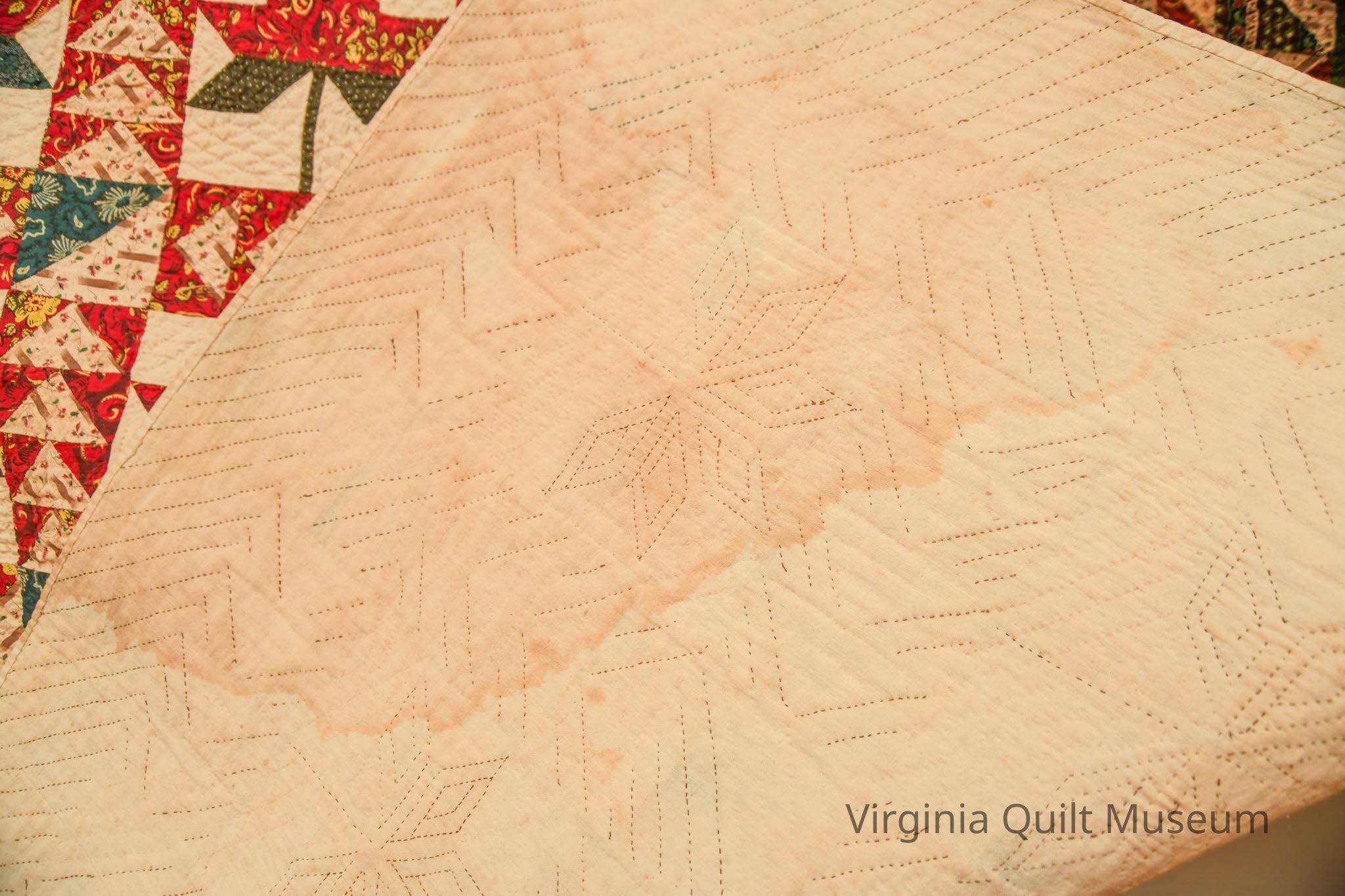 Very good. Large light stain and a few small stains noted on backing only. Colors remain strong and quilt appears to have had little or no wear.