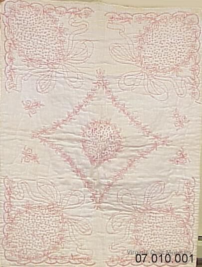 It is believed that the quilt was made for the donor for her birth and christening around 1927. The quilt maker could have been the donor's mother, Nell Grove Baugher who lived in Harrisonburg, Virginia, or it was the wife of Reverend Williams of the Episcopal Church in town.Collection