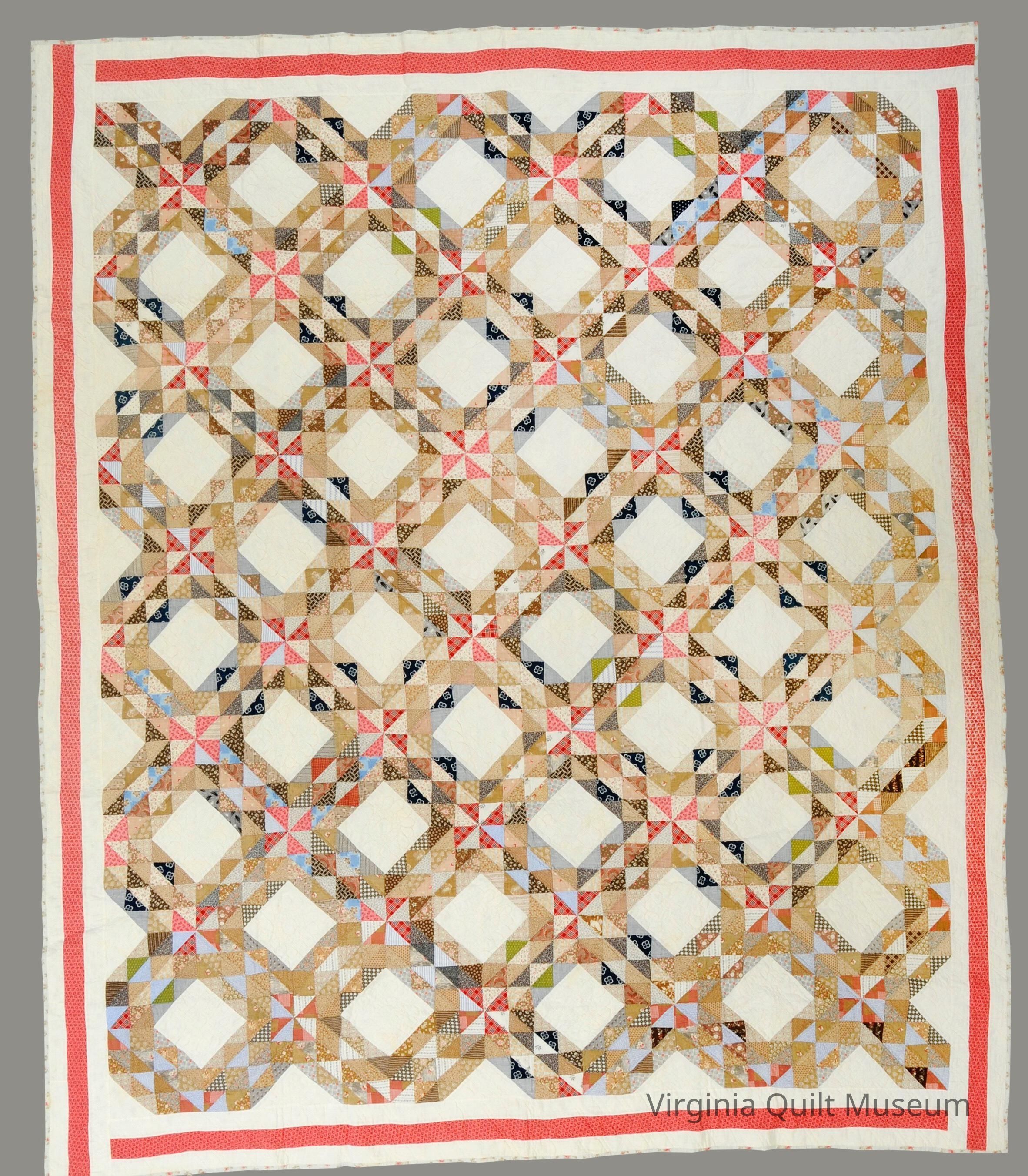 Quilt was made by Emma Rebecca Kerlin Miller either in Bridgewater, Virginia or Nokesville, Virginia. It is likely a family heirloom that remained in the family since its creation in the late 19th century.Collection