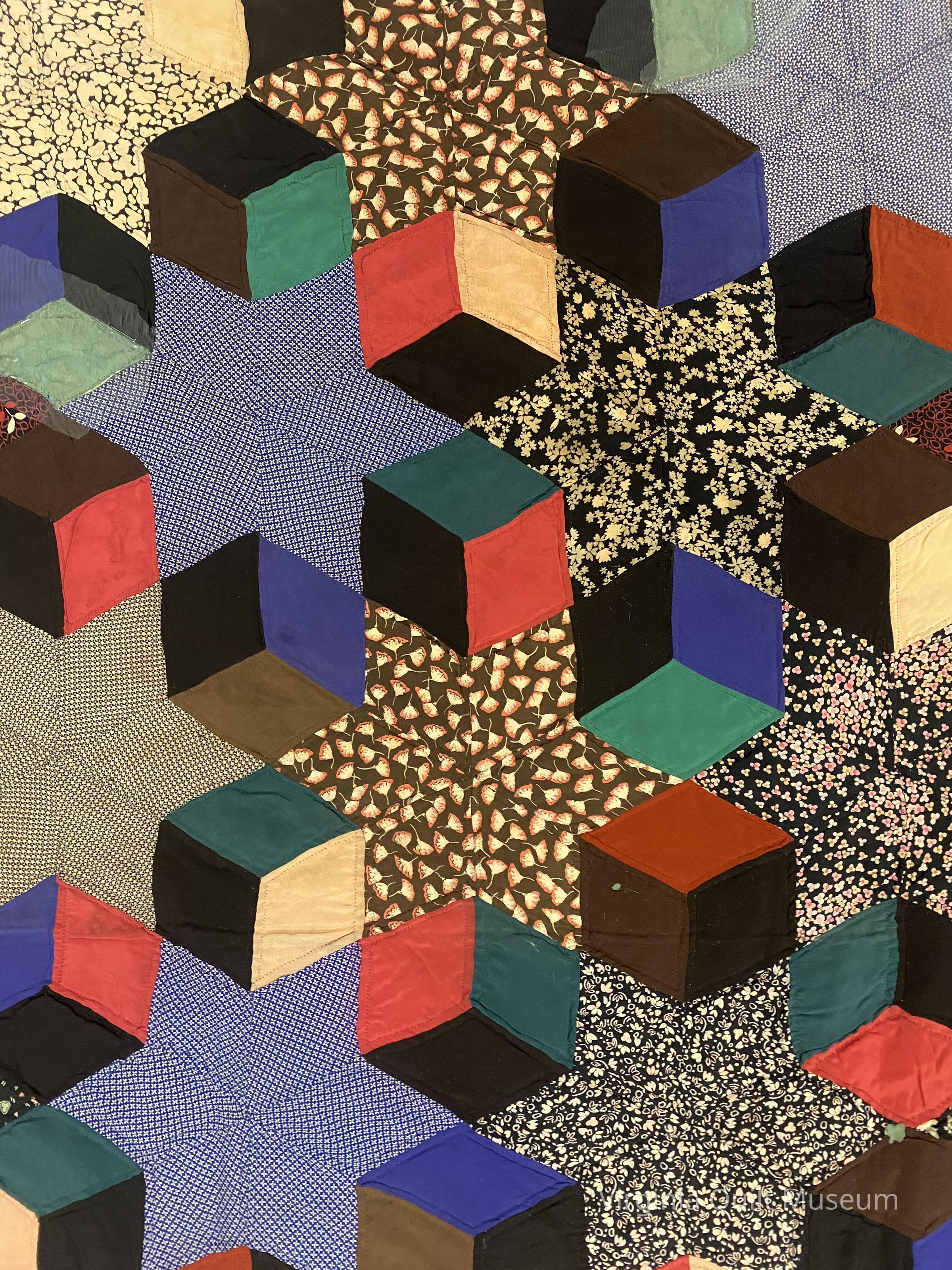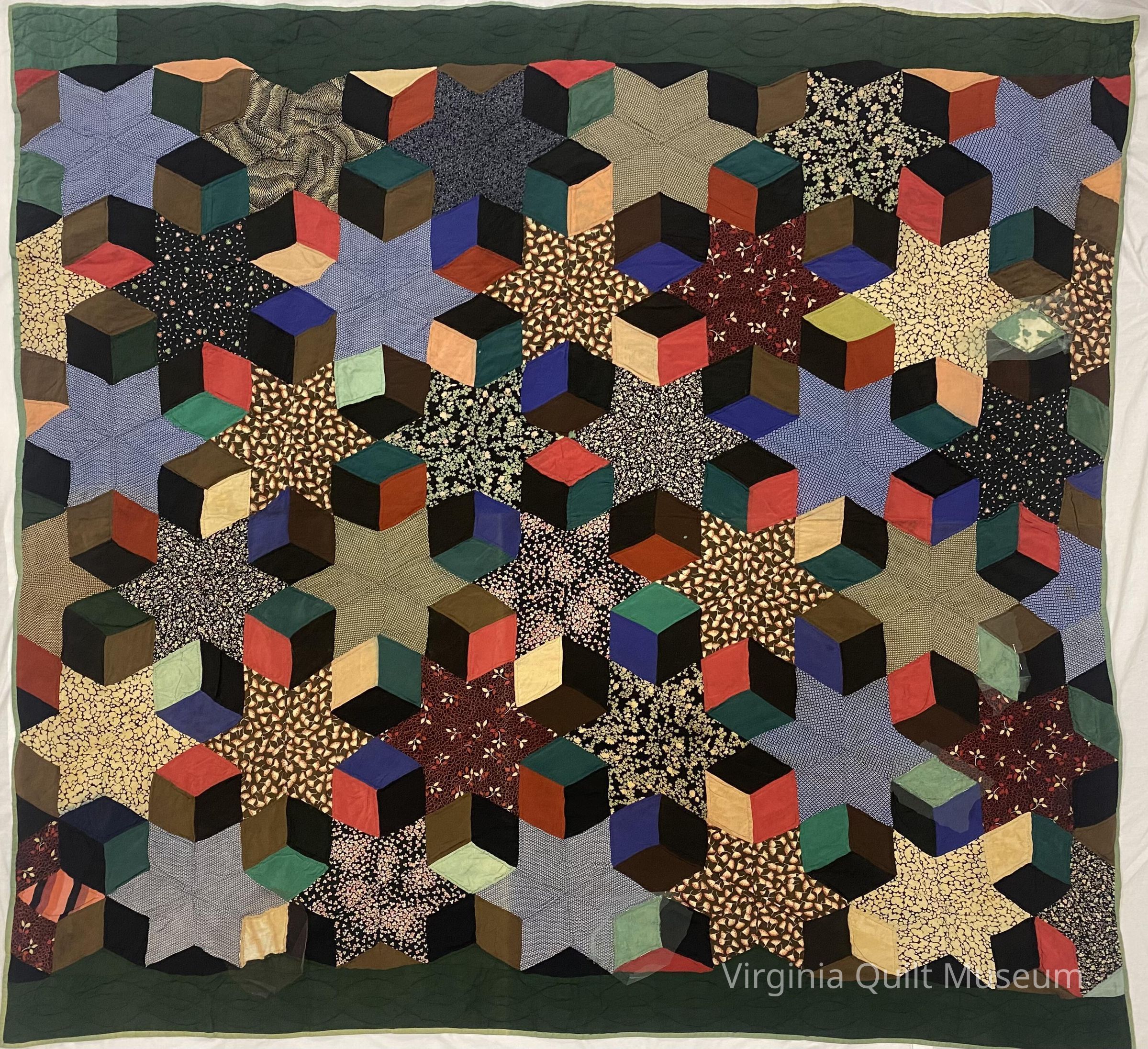 Made by Fannie Ruth Martin Heatwole. It is believed that the silks used in this piece were from Fannie's husband's work; Elmer Heatwole worked as a machinery foreman at a silk mill, likely the Stehli Silk Corporation that opened in Waynesboro, VA in 1925.Collection
