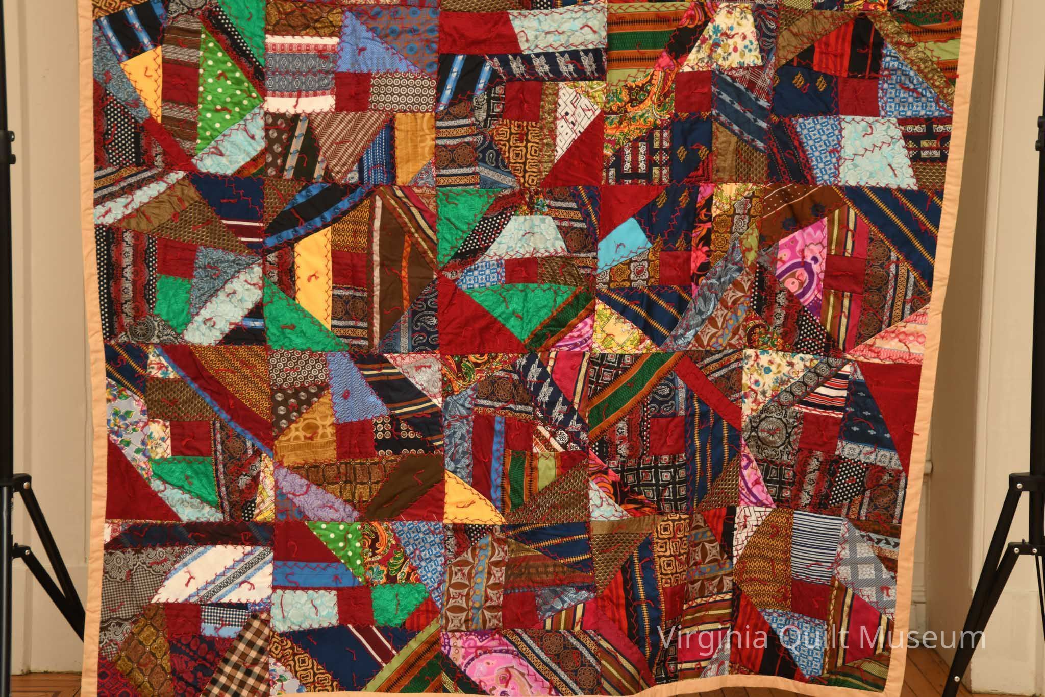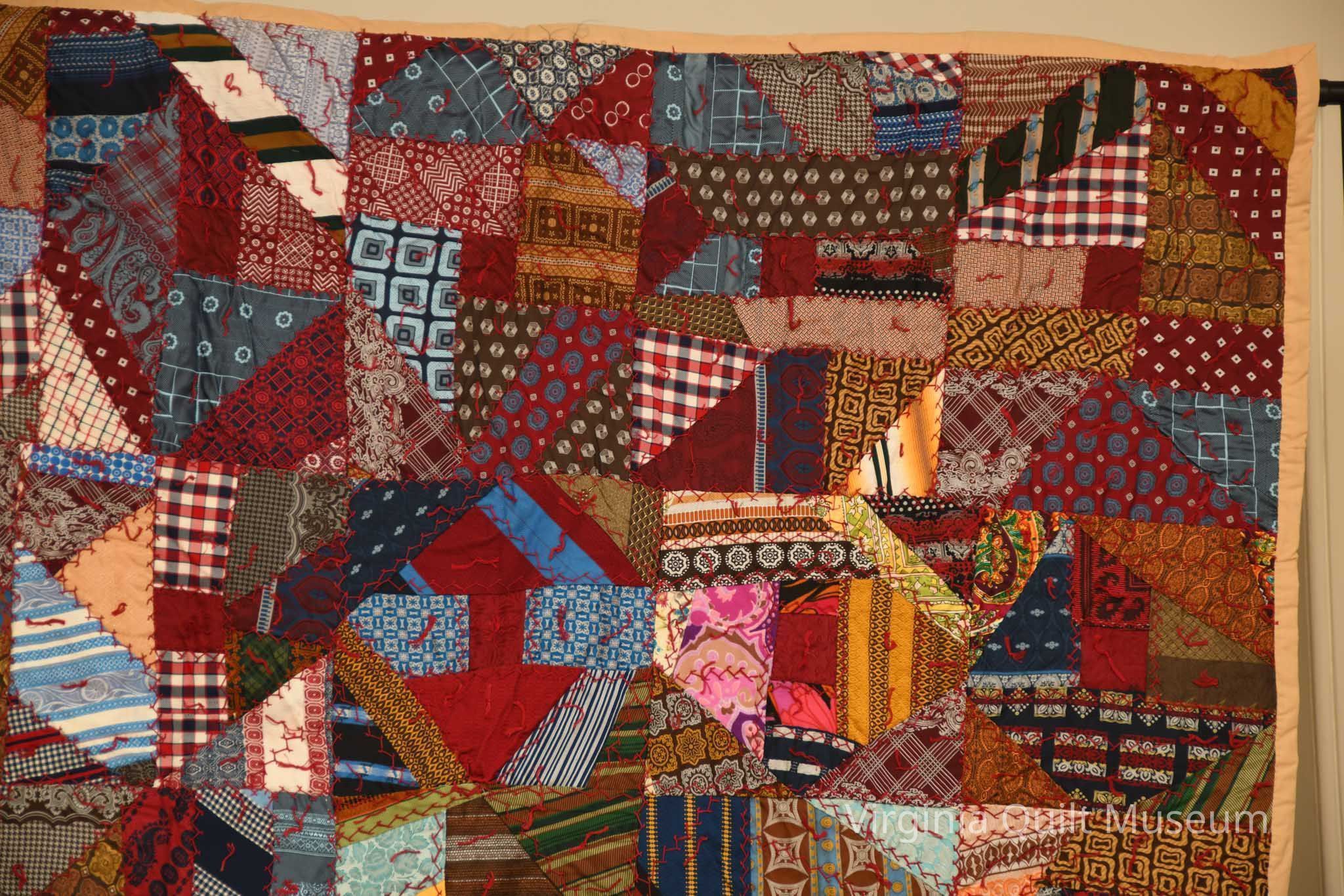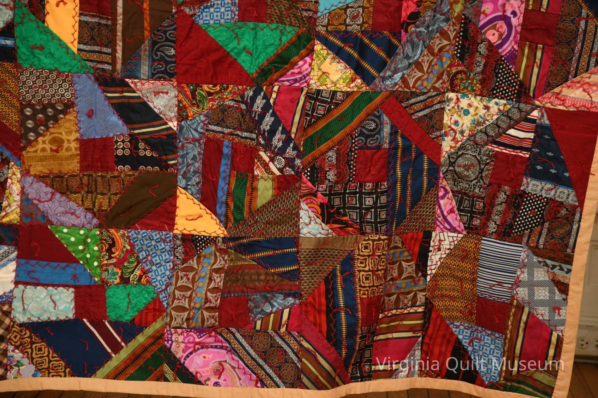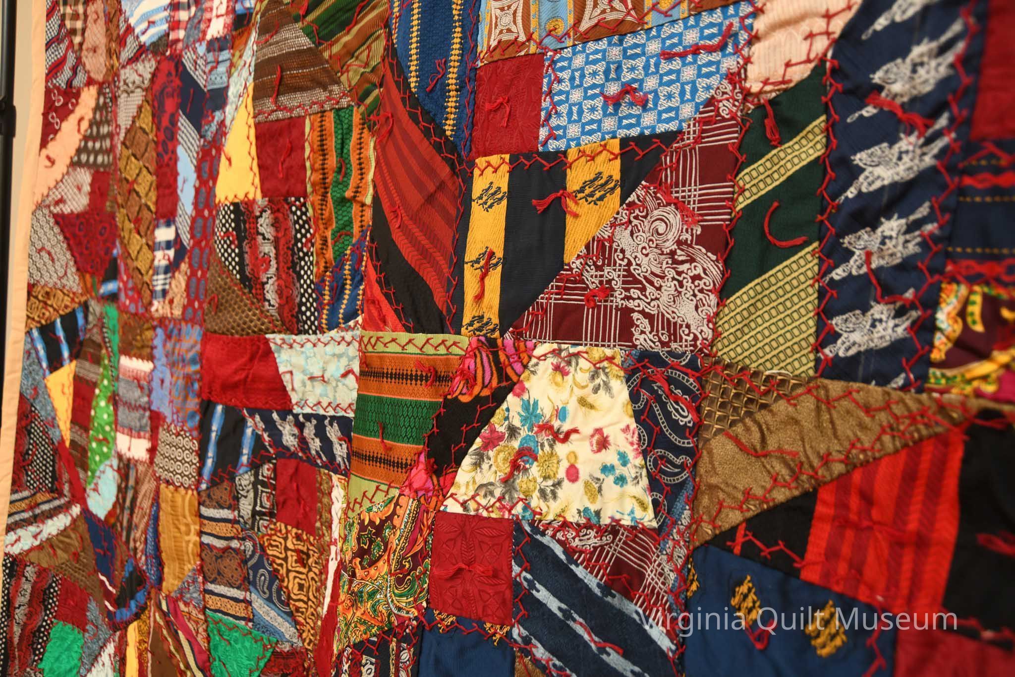 Embroidery done in red embroidery floss. The quilt is tied with knots on the front with red embroidery floss (6 strands).