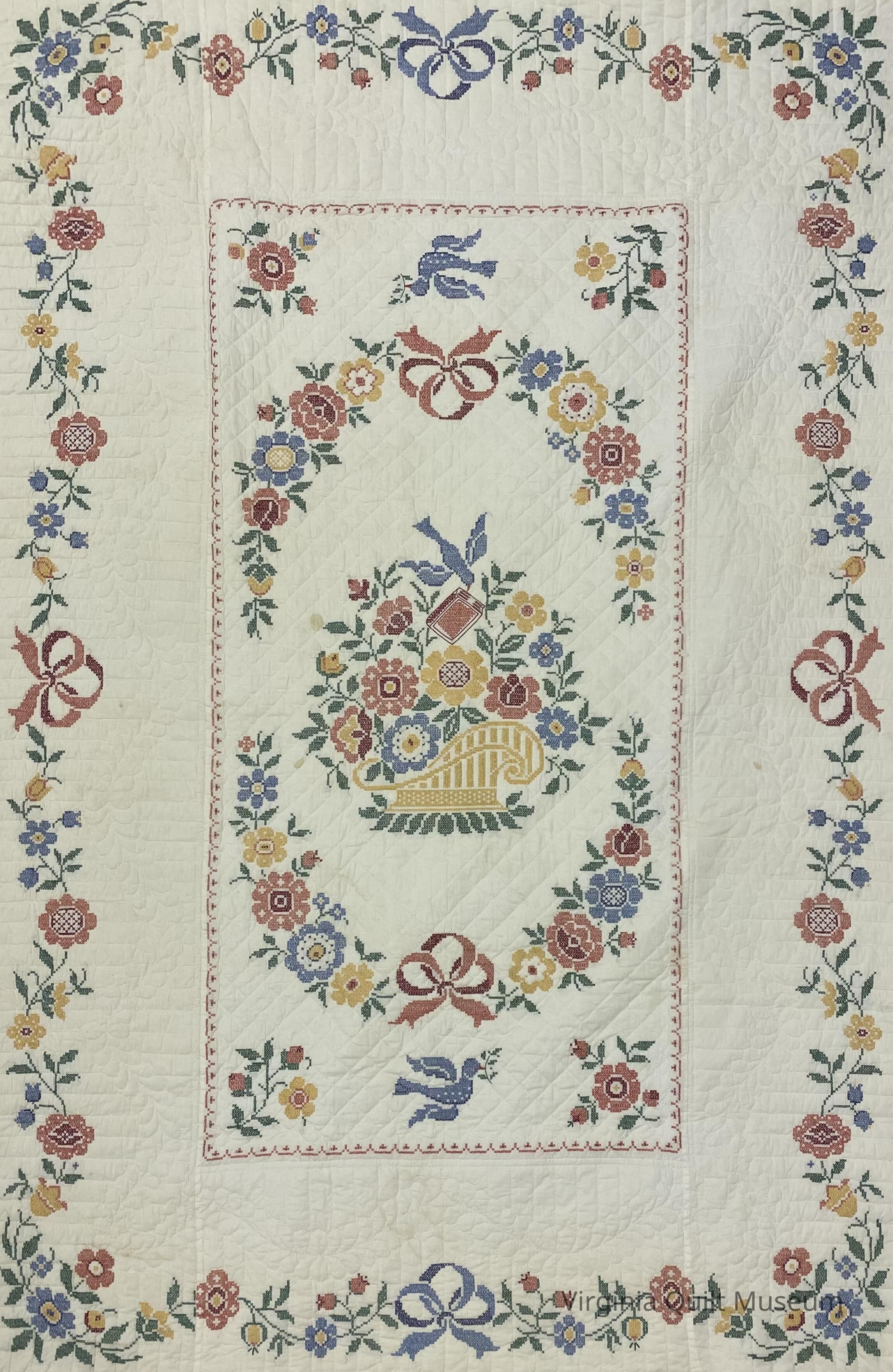 This kit quilt is cross-stitched with an appliqué border. The medallion motif was created with cross-hatching.Collection
