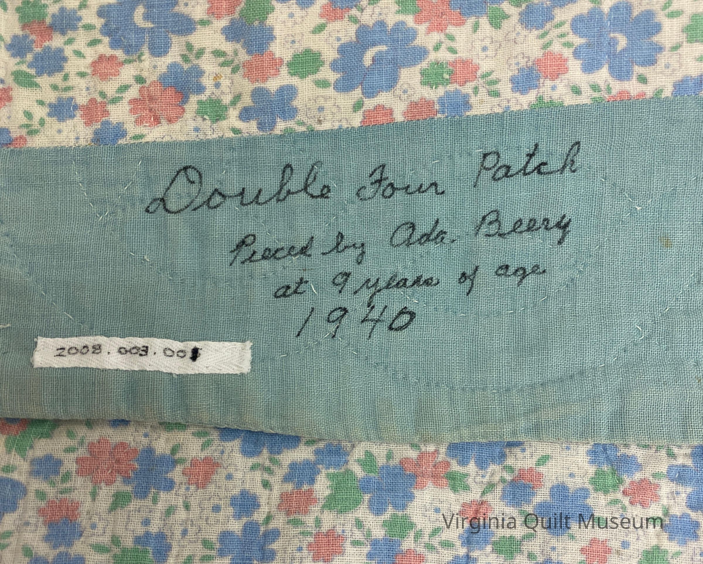 Made by Ada Rodes at the age of 9. She learned the pattern from her Mennonite grandmother, who taught it to all young girls in the family.Collection
