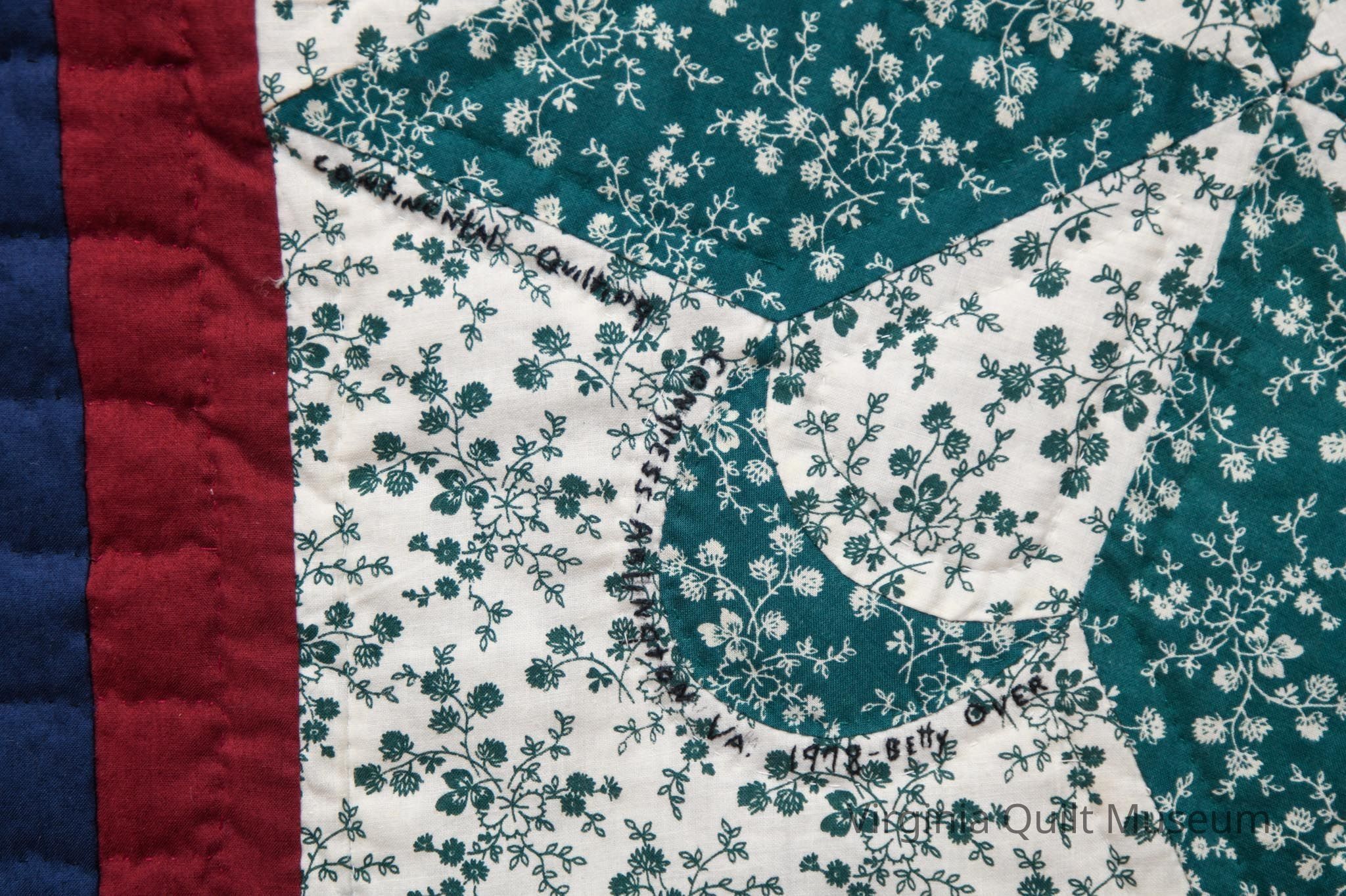 Hazel Carter was given the blocks at the First Centennial Quilting Congress and she quilted it later. Pieced in 1978 and quilted in 2012Acquisition